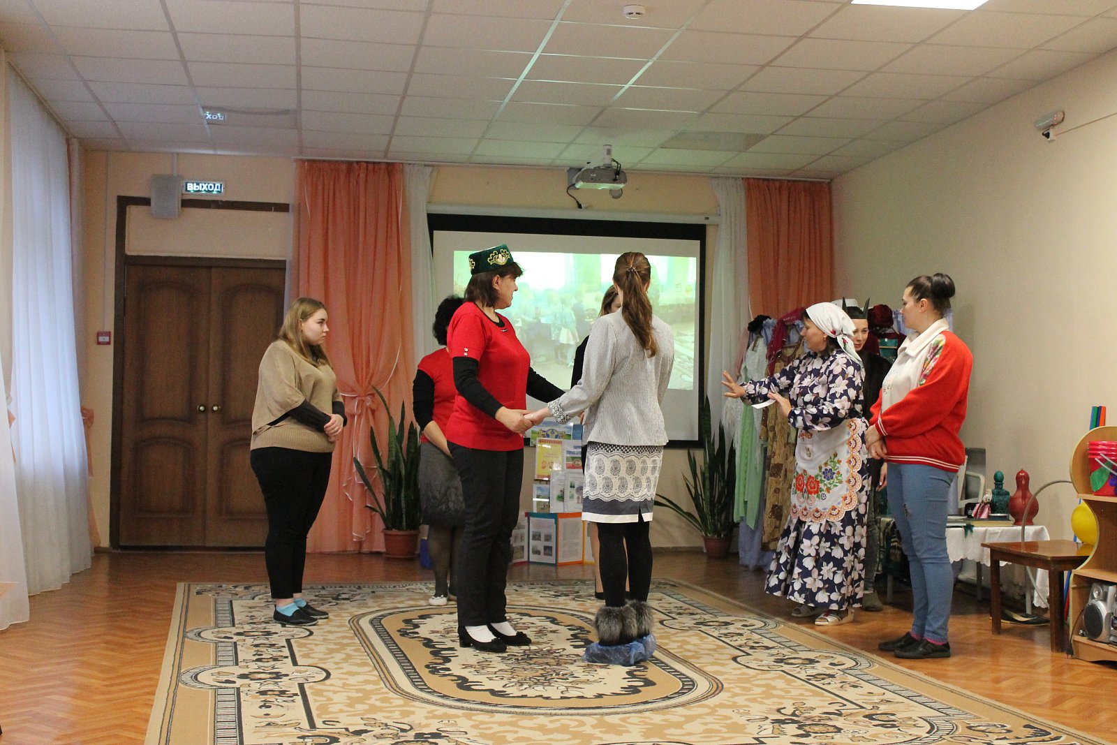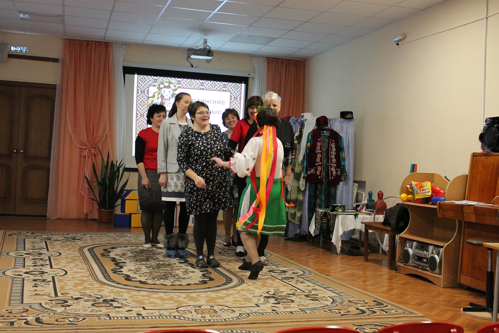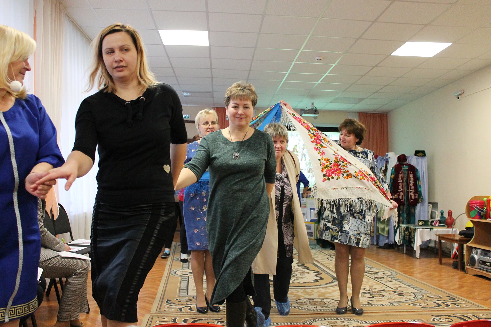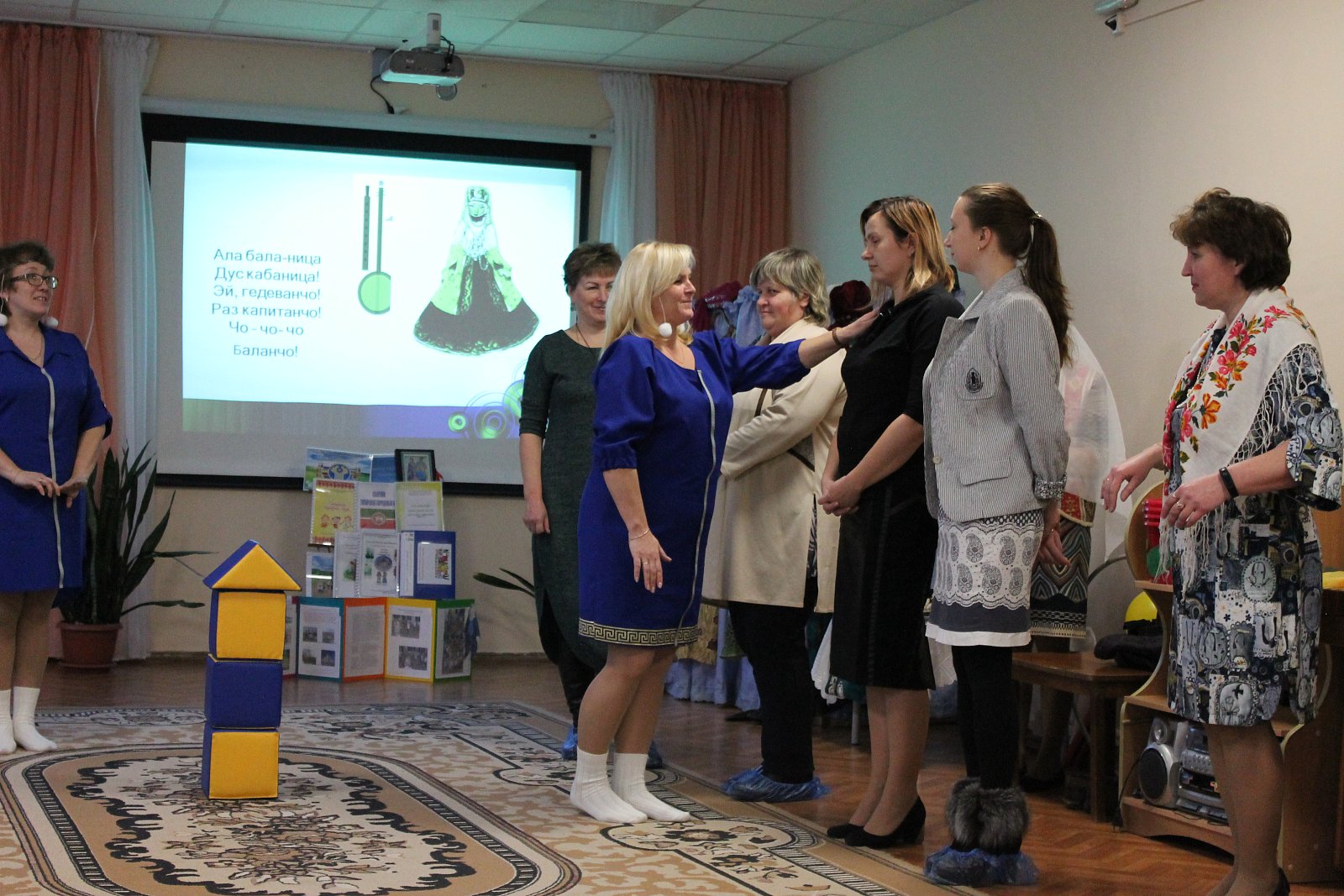 Поистине зрелищной была игровая деятельность, организованная творческой группой педагогов МБДОУ № 19 под руководством старшего воспитателя Лосевой Надежды Владимировны. Воспитатели Цепелева Валентина Владимировна, Ромина Марина Николаевна, Кузьмичева Евгения Вадимовна, Русакова Елена Борисовна, Плетнева Наталья Геннадьевна, младший воспитатель Сорокина Елена Игоревна пригласили присутствующих в «путешествие», в ходе которого были организованы армянские, лезгинские и украинские игры, звучала народная музыка.