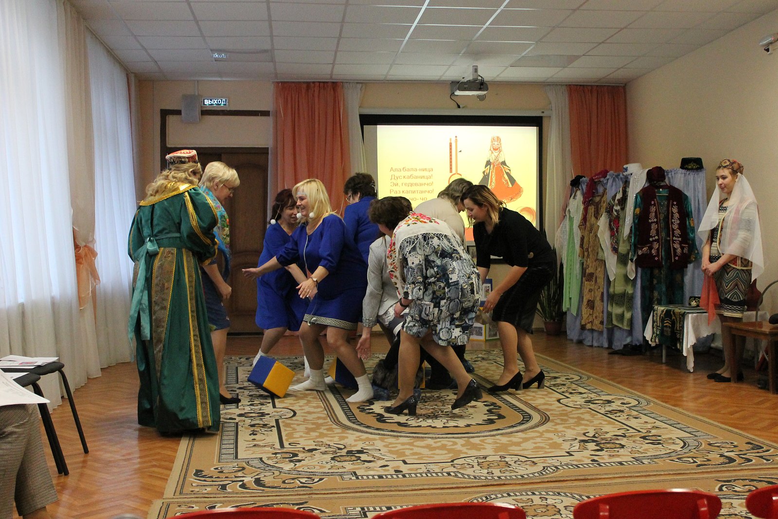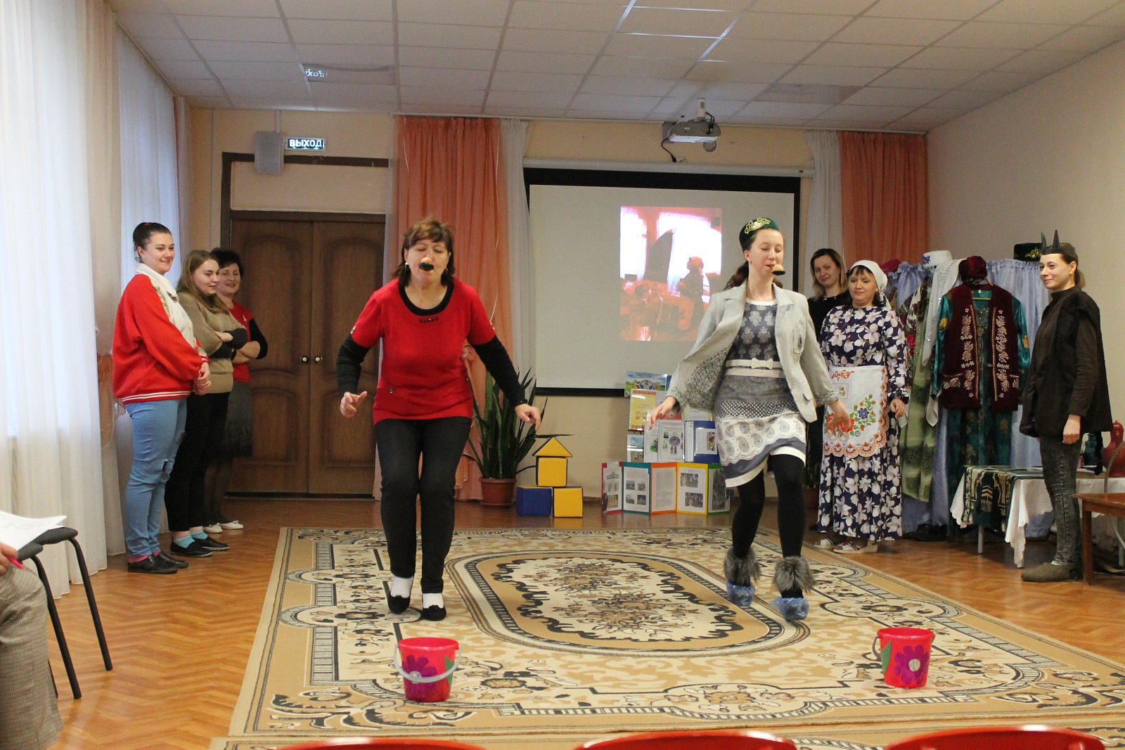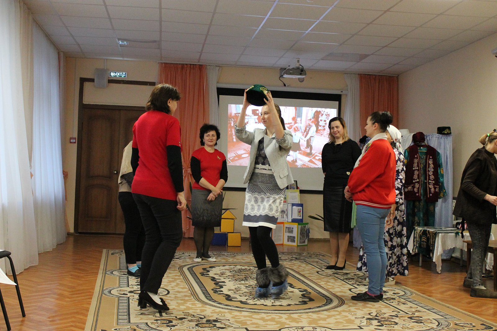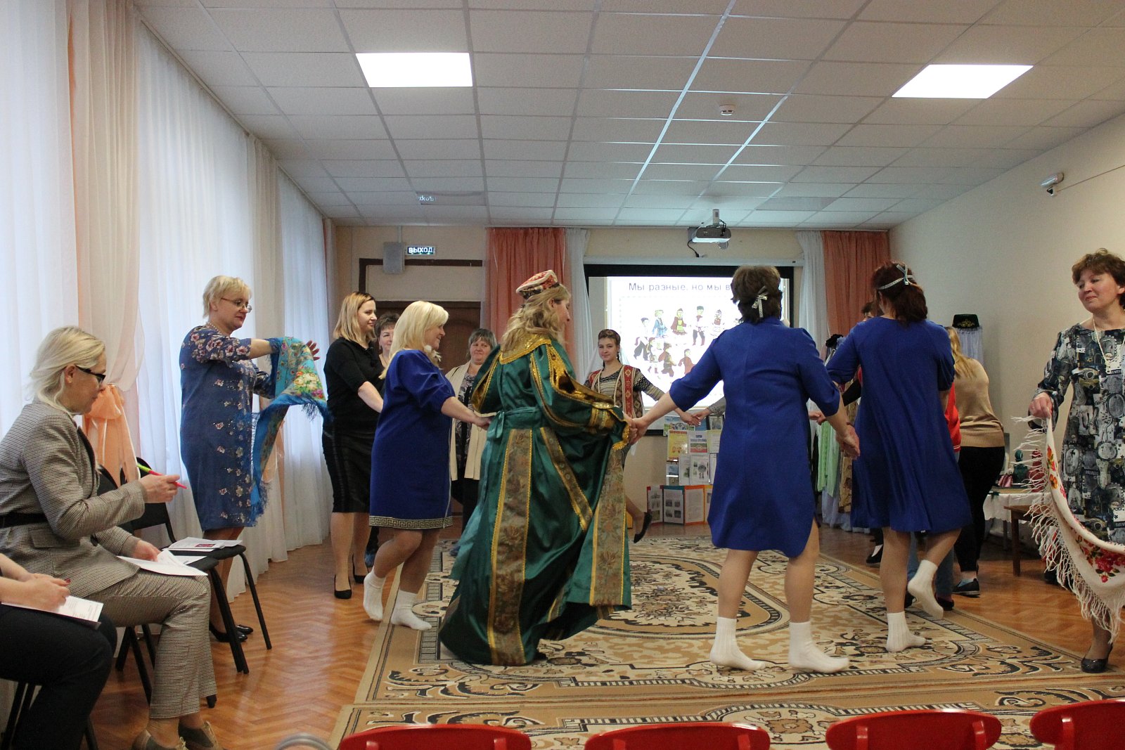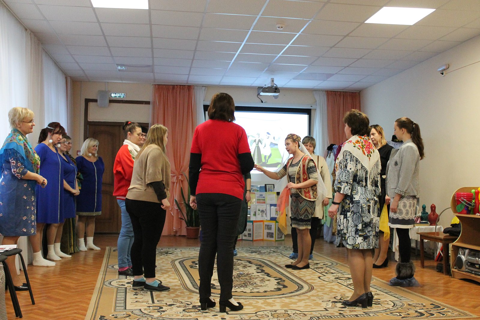 Поистине зрелищной была игровая деятельность, организованная творческой группой педагогов МБДОУ № 19 под руководством старшего воспитателя Лосевой Надежды Владимировны. Воспитатели Цепелева Валентина Владимировна, Ромина Марина Николаевна, Кузьмичева Евгения Вадимовна, Русакова Елена Борисовна, Плетнева Наталья Геннадьевна, младший воспитатель Сорокина Елена Игоревна пригласили присутствующих в «путешествие», в ходе которого были организованы армянские, лезгинские и украинские игры, звучала народная музыка.
