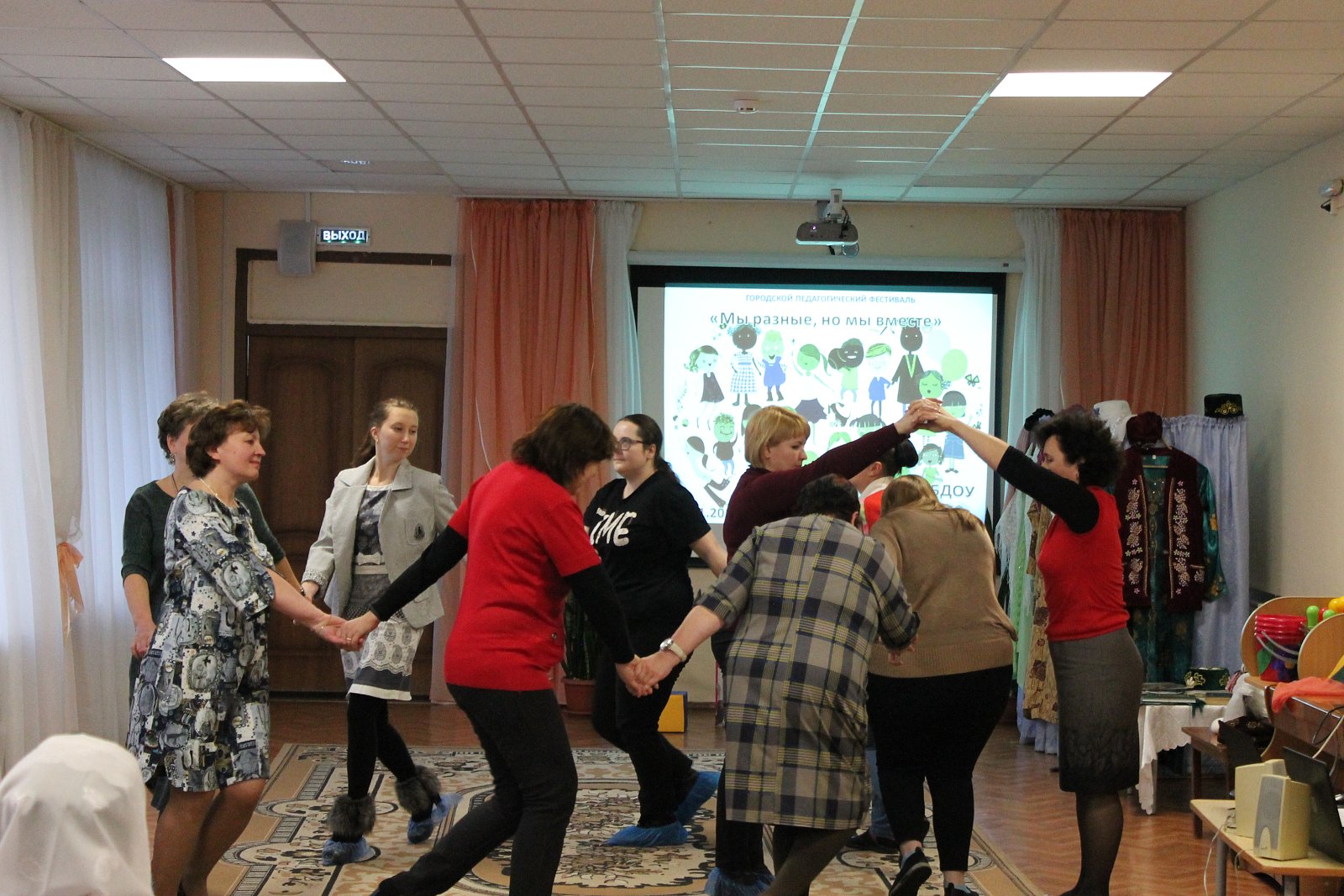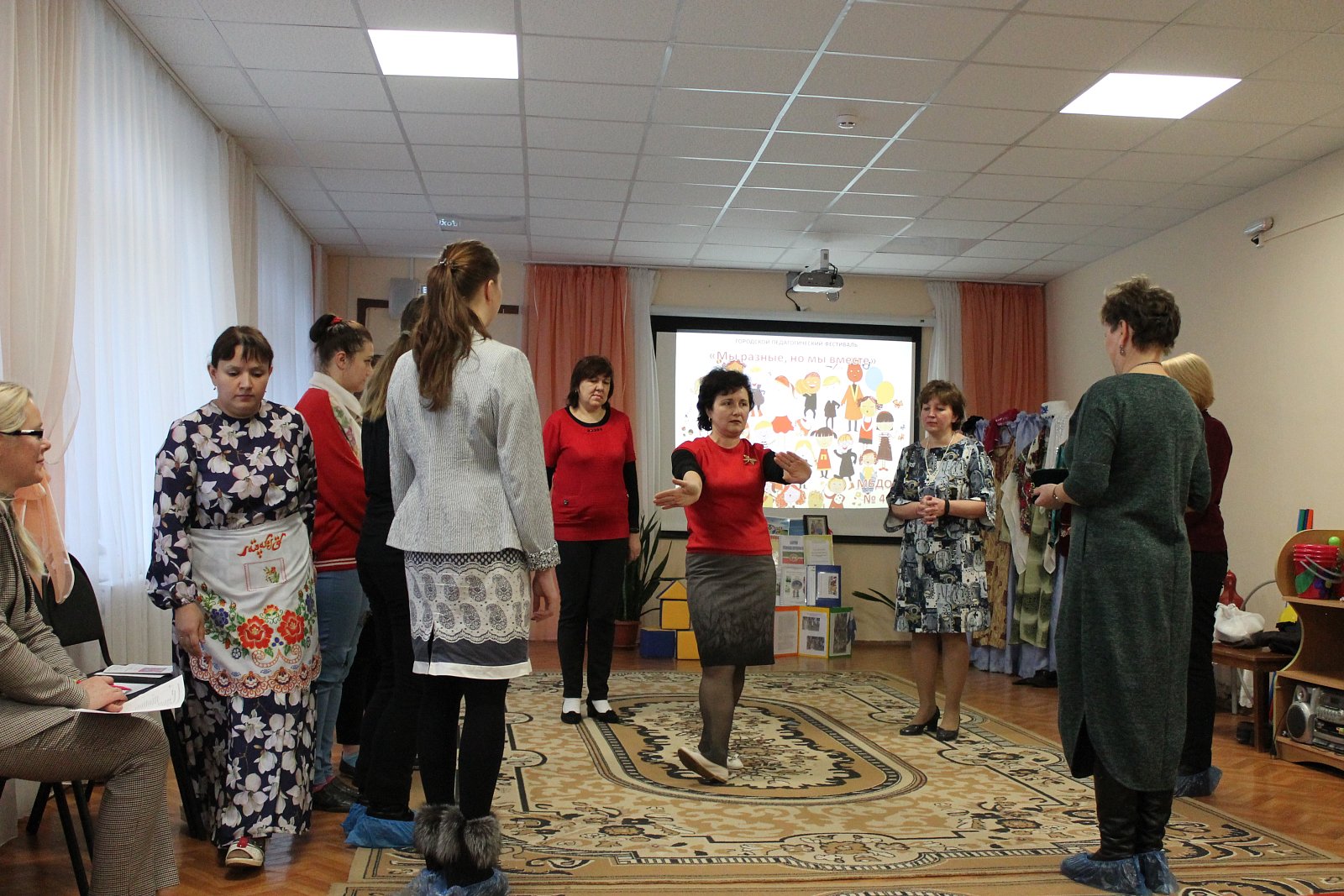 29 ноября 2019 года в Муниципальном бюджетном дошкольном образовательном учреждении детский сад № 49 в рамках деятельности городского ресурсного центра «Реализация современных технологий развития творческой игровой деятельности в соответствии с Федеральными государственными образовательными стандартами дошкольного образования (ФГОС ДО)» в целях повышения профессиональной компетентности педагогов города в области полиэтнокультурного образования дошкольников посредством народных игр был проведён городской педагогический фестиваль «Мы разные, но мы вместе»