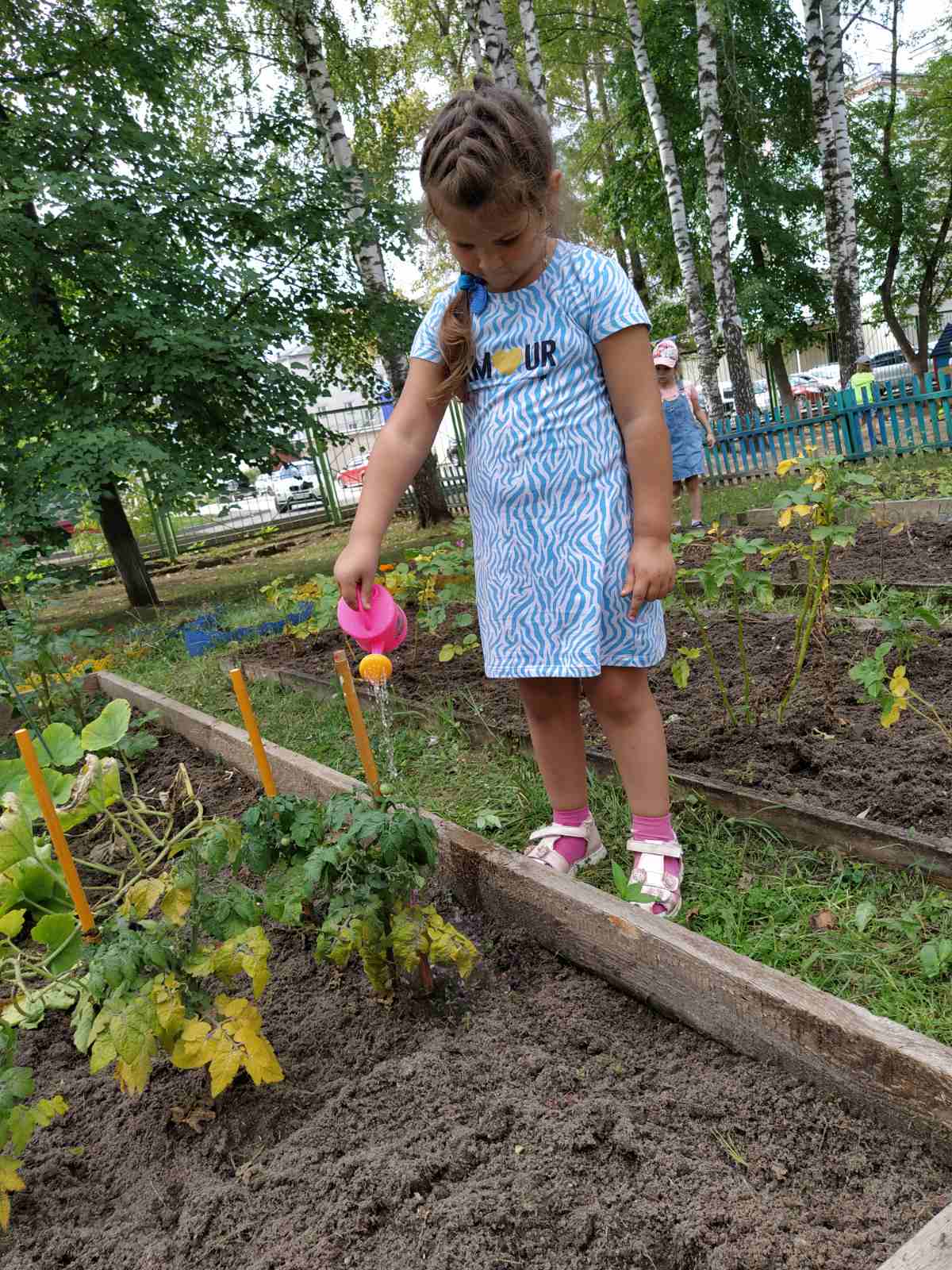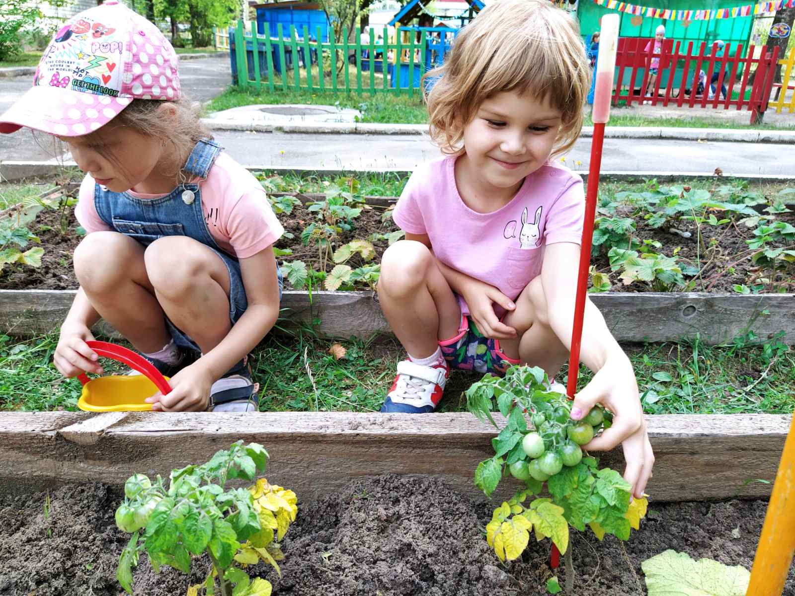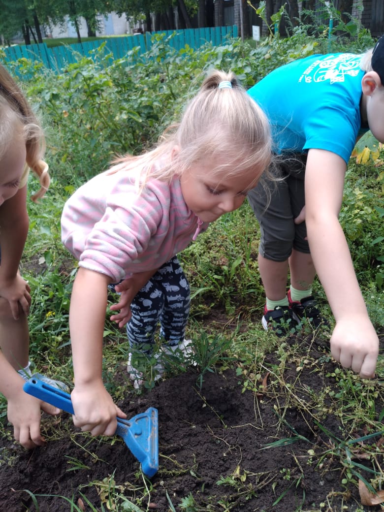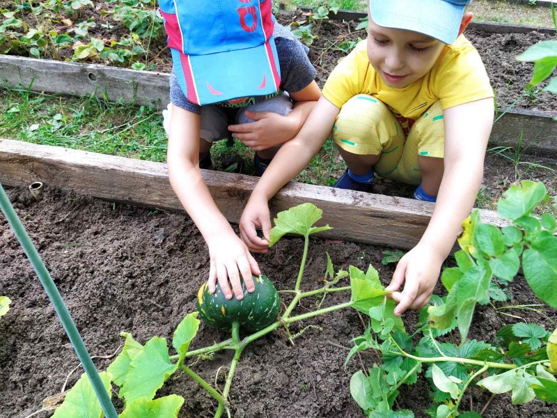 Всё лето воспитанники детского сада № 49 ухаживали за посадками овощей и цветов. Они удаляли сорняки, рыхлили почву. И их труд принёс результат: выросшие картофель, томаты и тыква.... А также цветущие и радующие глаз клумбы..А как счастливы дети! Молодцы!