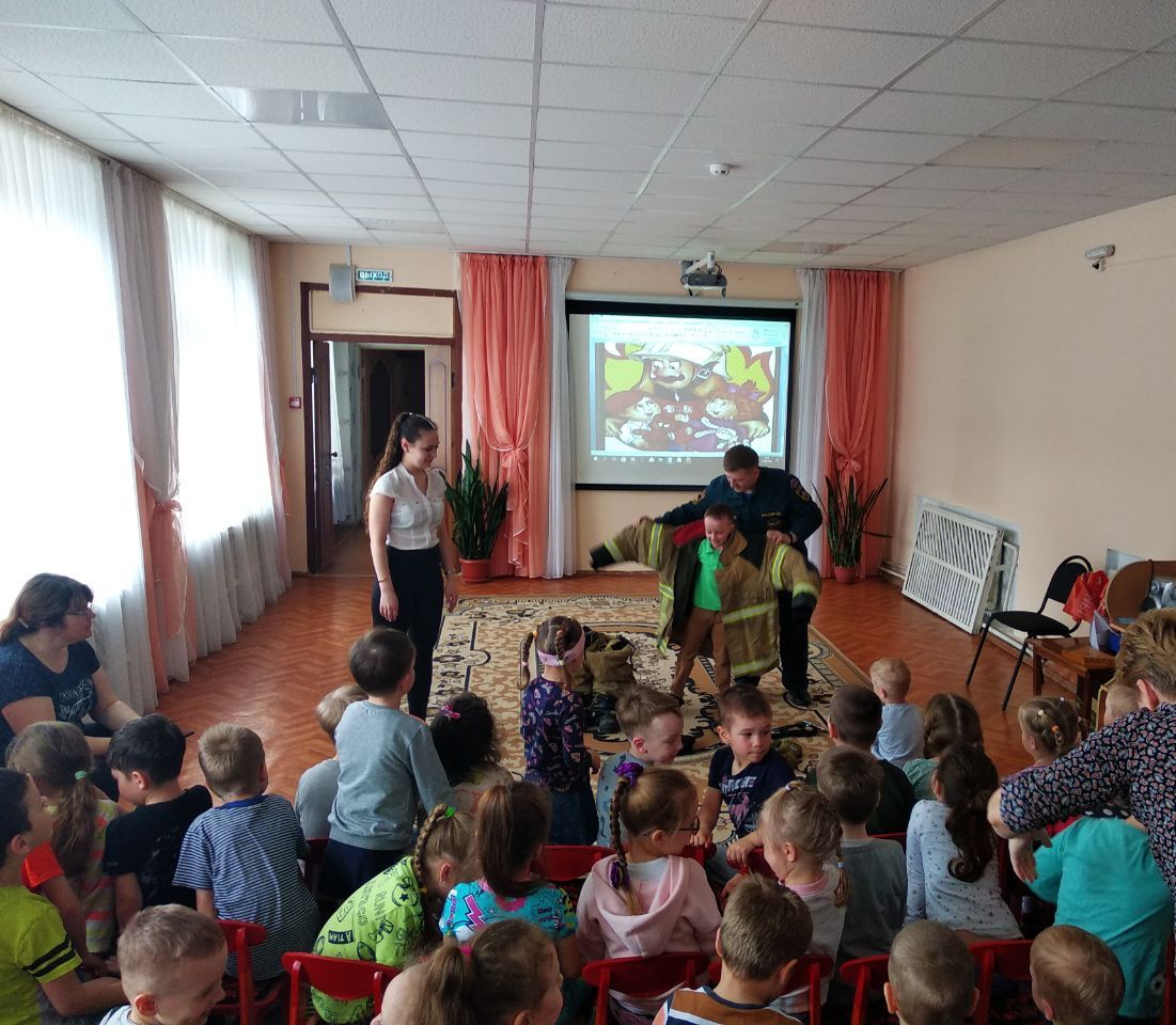 В гостях у ребят побывал пожарный пожарно-спасательной части № 14 Посыпкин Дмитрий Евгеньевич, который очень интересно рассказал о своей профессии, продемонстрировал видеоролики противопожарной тематики. Дети задавали много вопросов. Им удалось примерить форму пожарного.