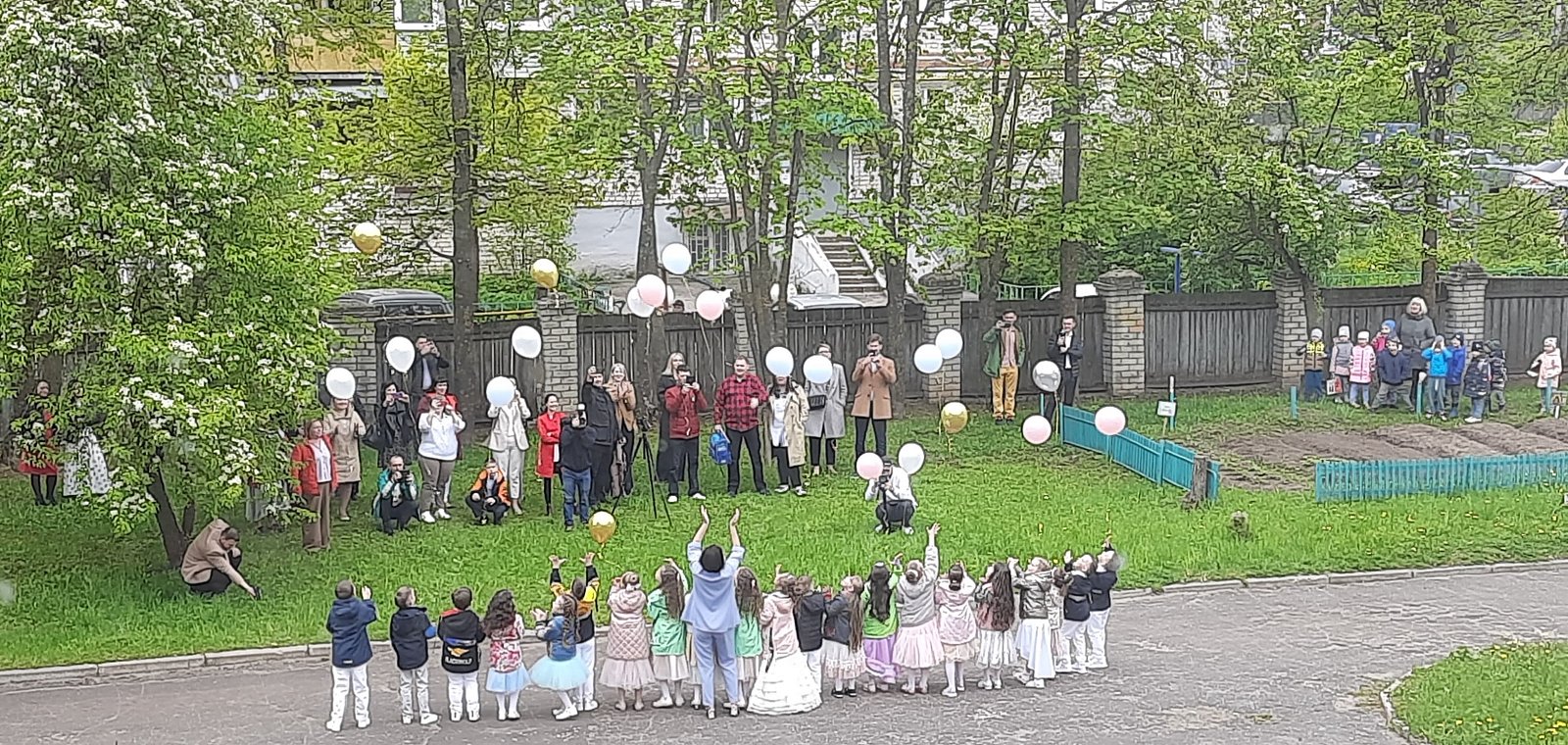 В заключение дети загадали заветные желания и выпустили в небо разноцветные воздушные шары, а затем вместе с родителями посадили тую на память о выпуске – 2022.