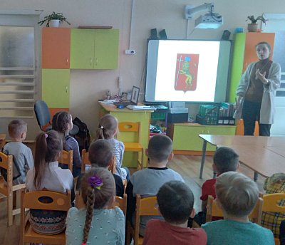 К Дню государственного герба Российской Федерации была приурочена встреча детей подготовительной к школе группы с сотрудником городского историко-мемориального музея Цветковой Анастасией Александровной. Она очень интересно и доступно рассказала детям о гербах городов Владимирской области.