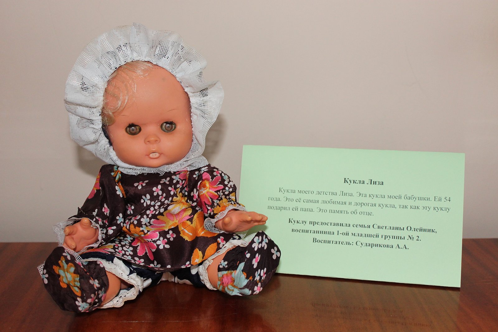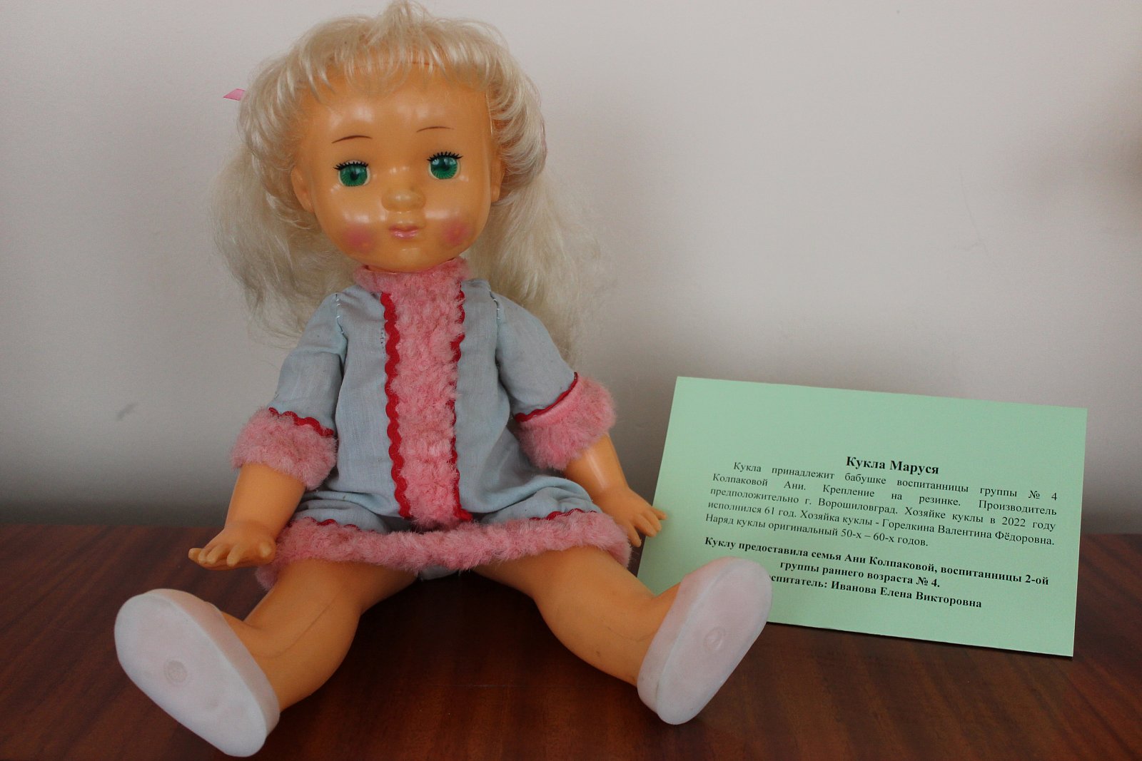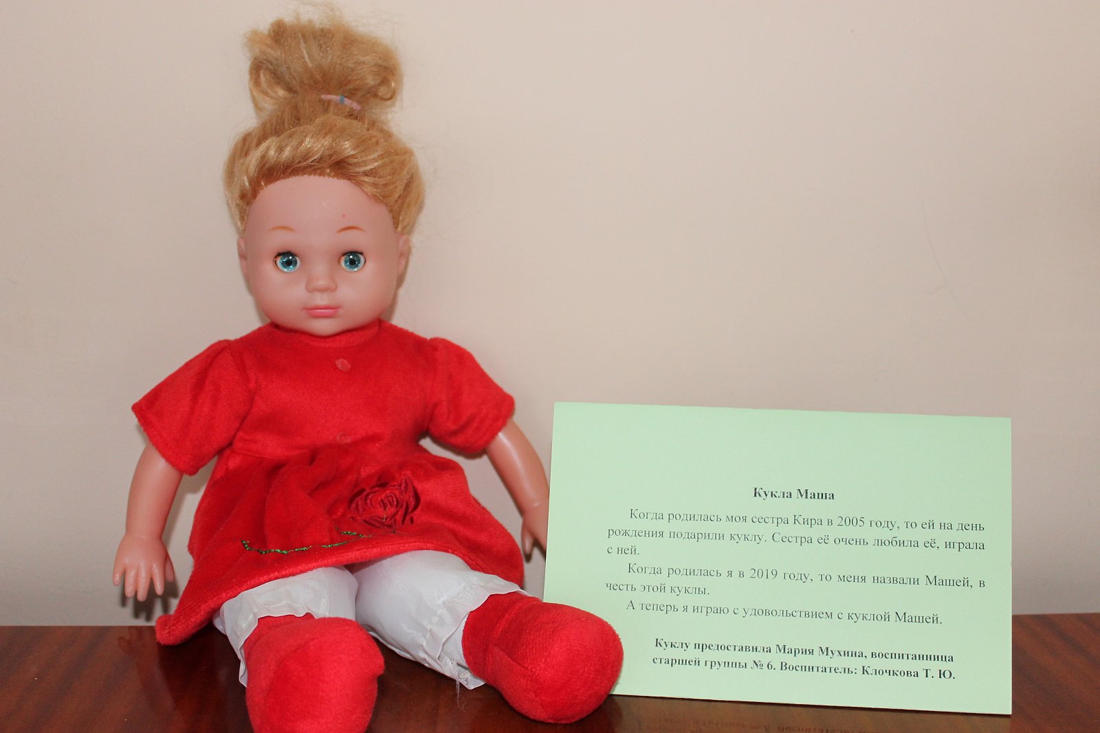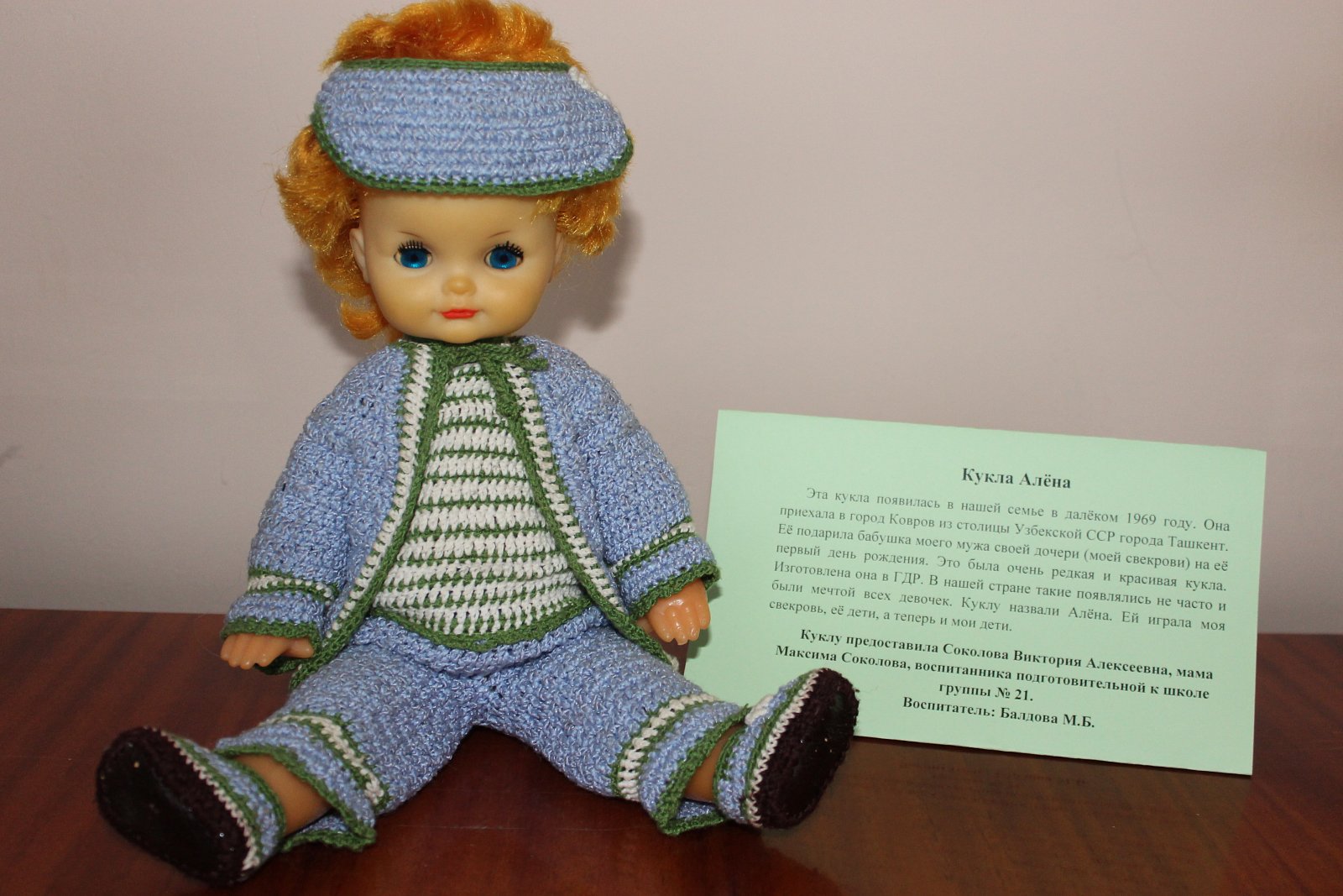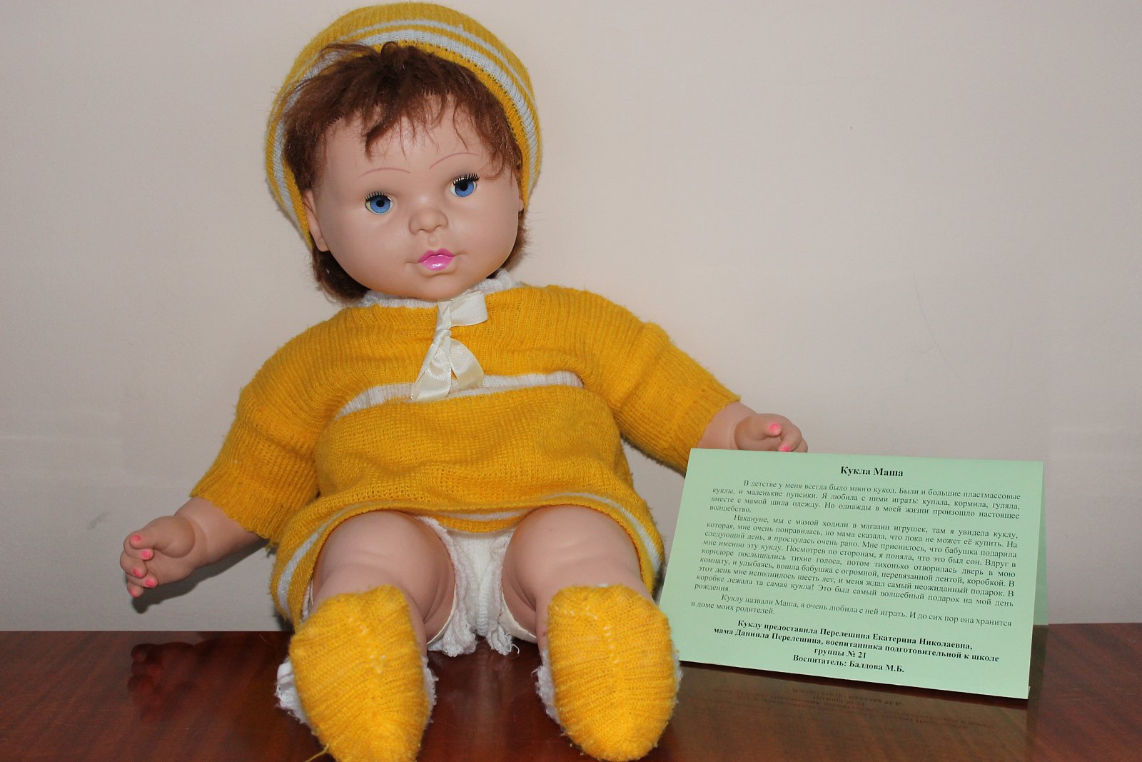 Куклу предоставила Соколова Виктория Алексеевна, мама Максима Соколова, воспитанника подготовительной к школе группы № 21.