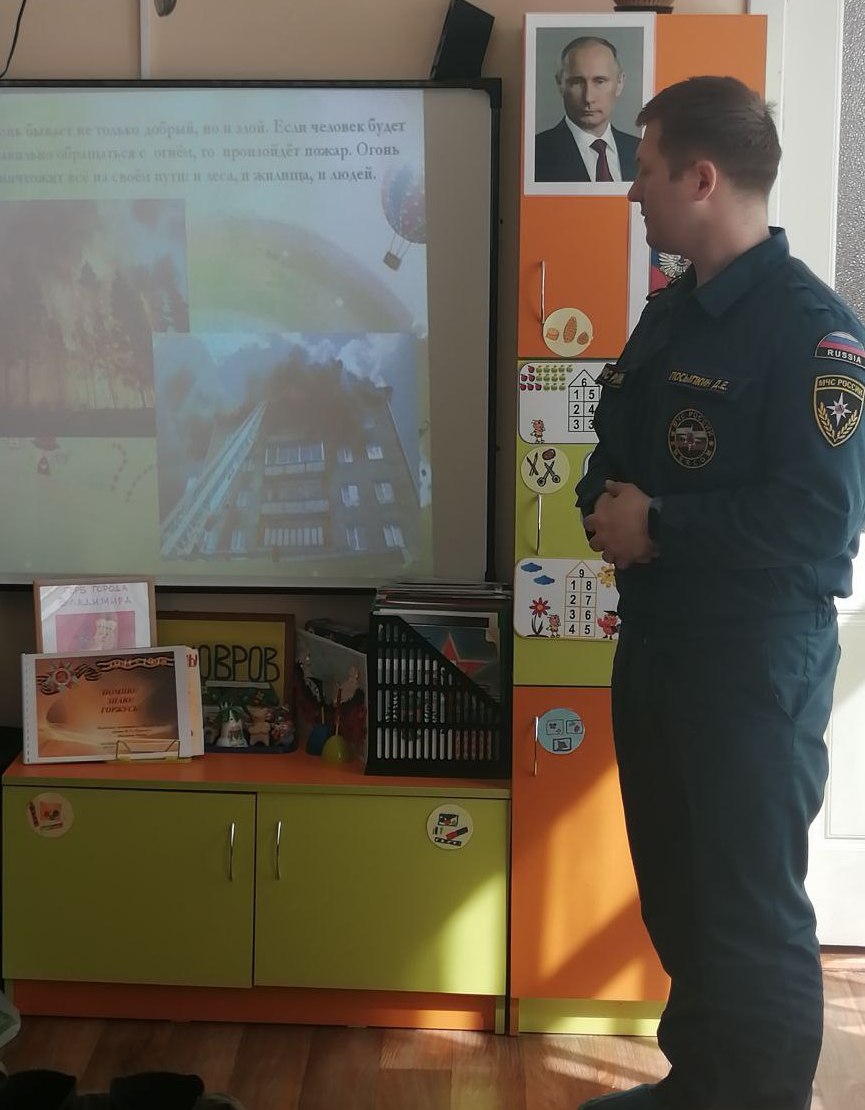 В гостях у ребят побывал пожарный пожарно-спасательной части № 14 Посыпкин Дмитрий Евгеньевич, который рассказал детям о своей профессии, показал видео, продемонстрировал спецодежду. Дети слушали с большим интересом!