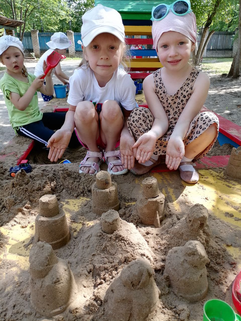 Дети очень любят играть с песком. Они с желанием строят замки, дороги, лепят куличики.