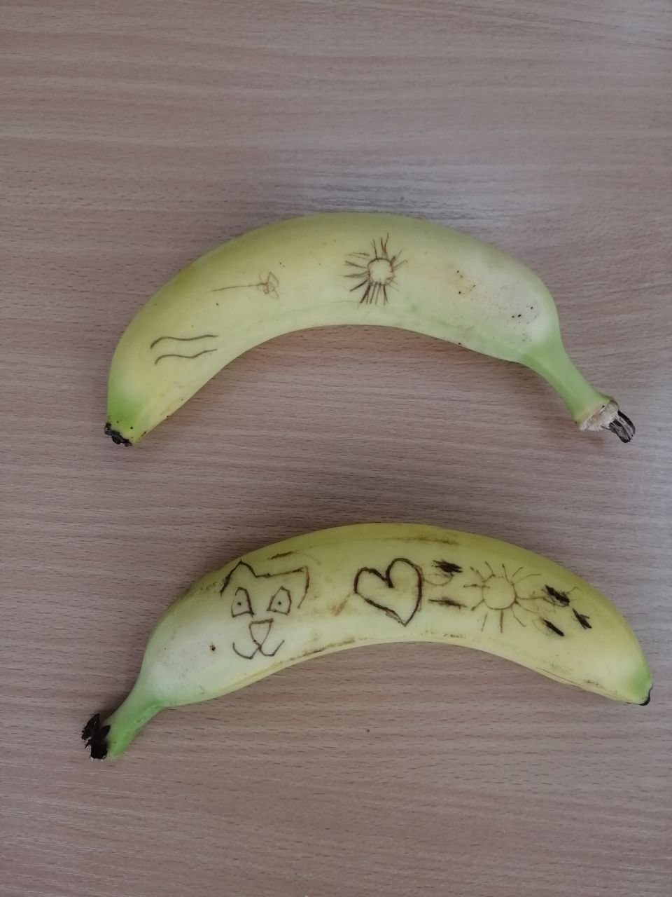 А на банане даже можно рисовать?! Со временем процарапанный острым предметом, например, зубочисткой, рисунок на кожуре банана темнеет. Это происходит потому, что при соприкосновении с воздухом крахмал банана синеет.
