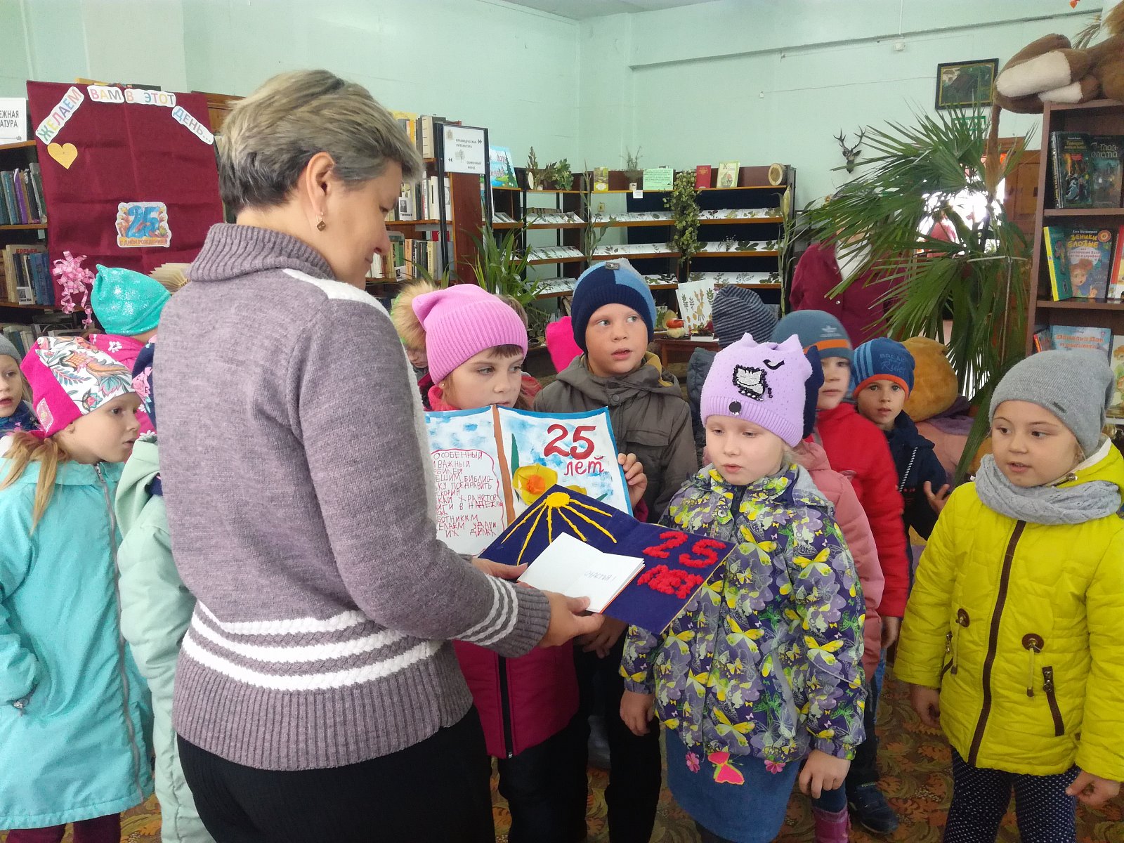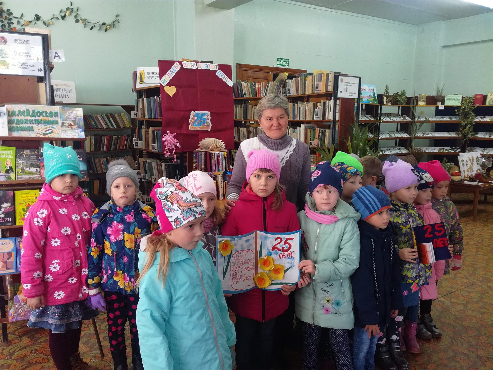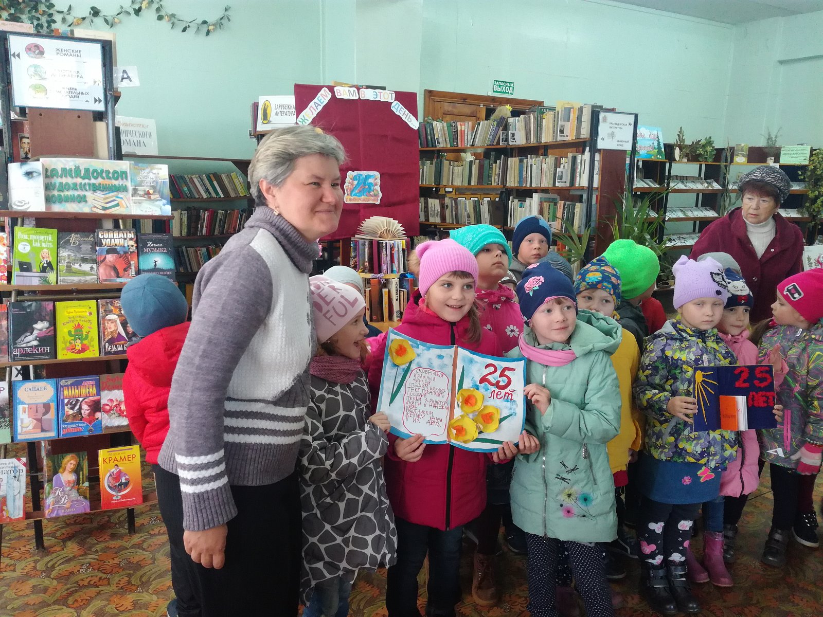 На протяжении многих лет МБДОУ № 49 сотрудничает с экологической библиотекой. 01 октября 2018 года экологическая библиотека праздновала свой юбилей - 25 лет! Воспитанники детского сада с удовольствием поздравили всех сотрудников с этой знаменательной датой и подарили открытки, изготовленные своими руками. Они поблагодарили сотрудников библиотеки за их внимание и заботу, интересные познавательные игры-занятия, интересные книги.