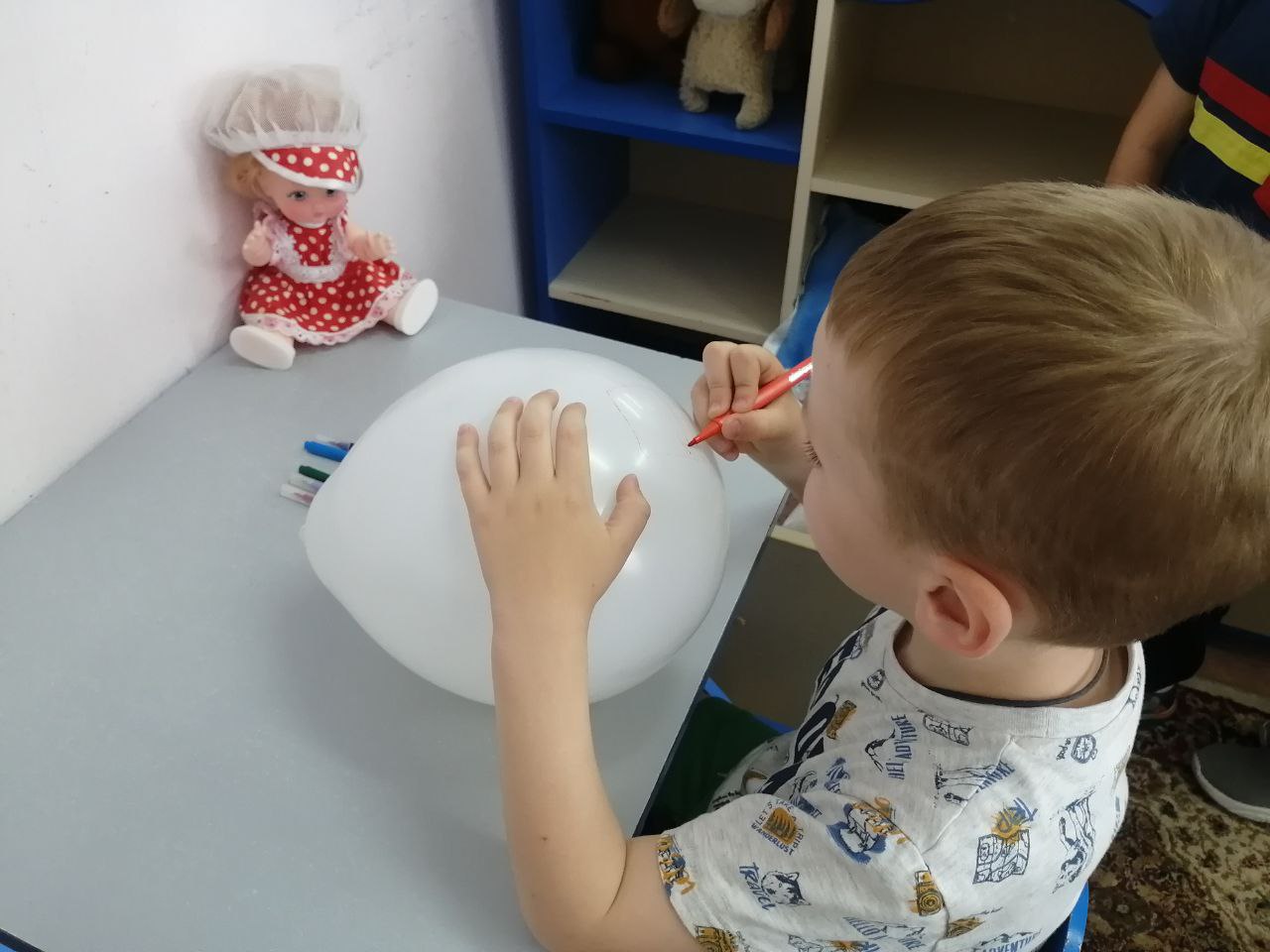 В среду «День творчества» - дети с помощью струи выдыхаемого возраста создавали рисунок ветра, рисовали на воздушных шариках. А также сочиняли стихи, загадки о воздухе, обитателях воздушного пространства.