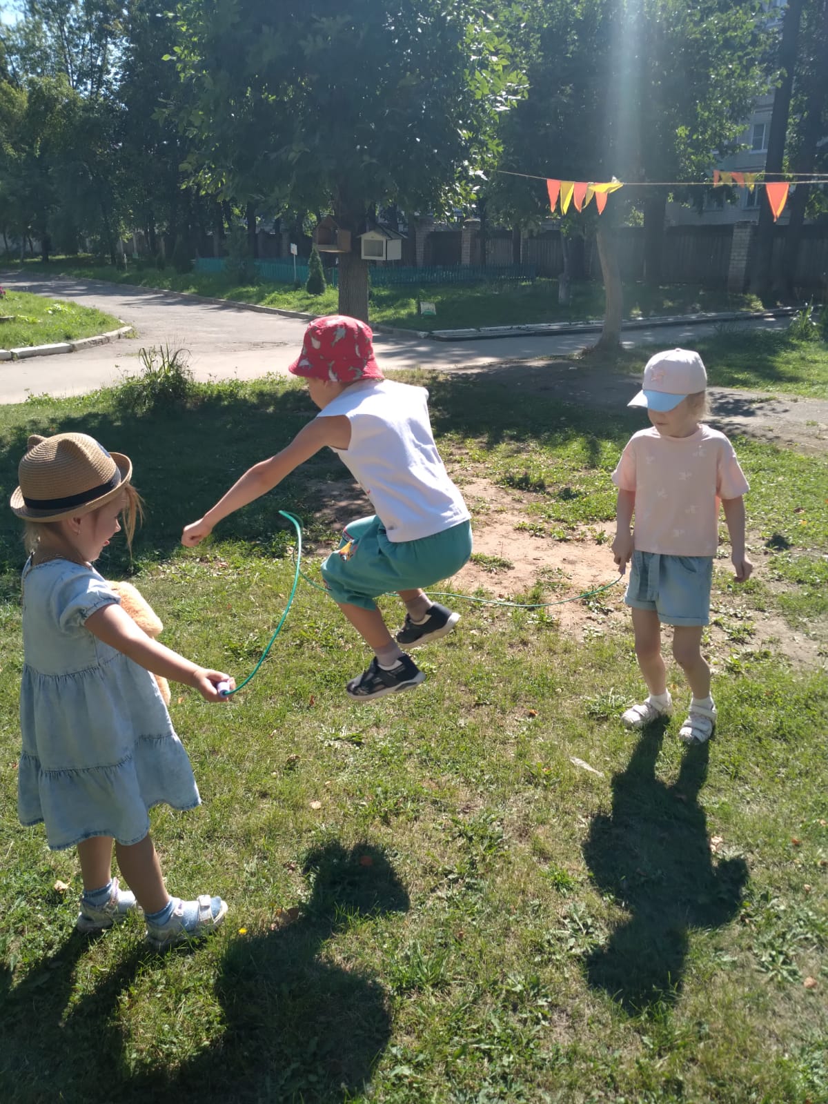 В ходе тематической недели "Быть здоровыми хотим!", которая была приурочена к Дню физкультурника дети много играли, скакали через скакалки, упражнялись в играх с резиночкой, в "классики", футбол, метали в вертикальные и горизонтальные цели, для них были организованы весёлые эстафеты и многое-многое другое.
