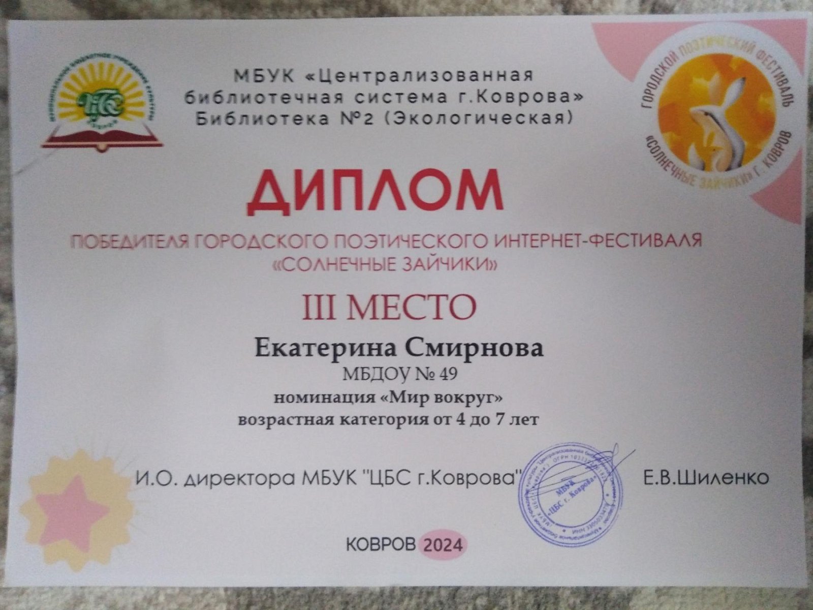 16 июня в городской экологической библиотеке состоялось награждение победителей городского детского интернет-фестиваля "Солнечные зайчики".