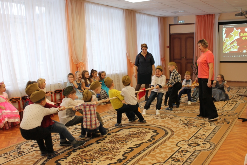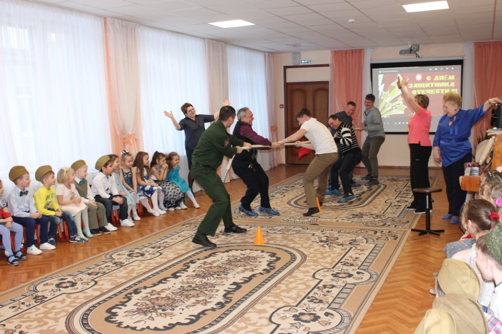 3. Музыкально-спортивные развлечения, посвящённые Дню защитника Отечества, на которых присутствовали папы и дедушки. Дети не только посвятили защитникам стихи, песни и танцы, но и соревновались в смекалке, находчивости, быстроте и ловкости.