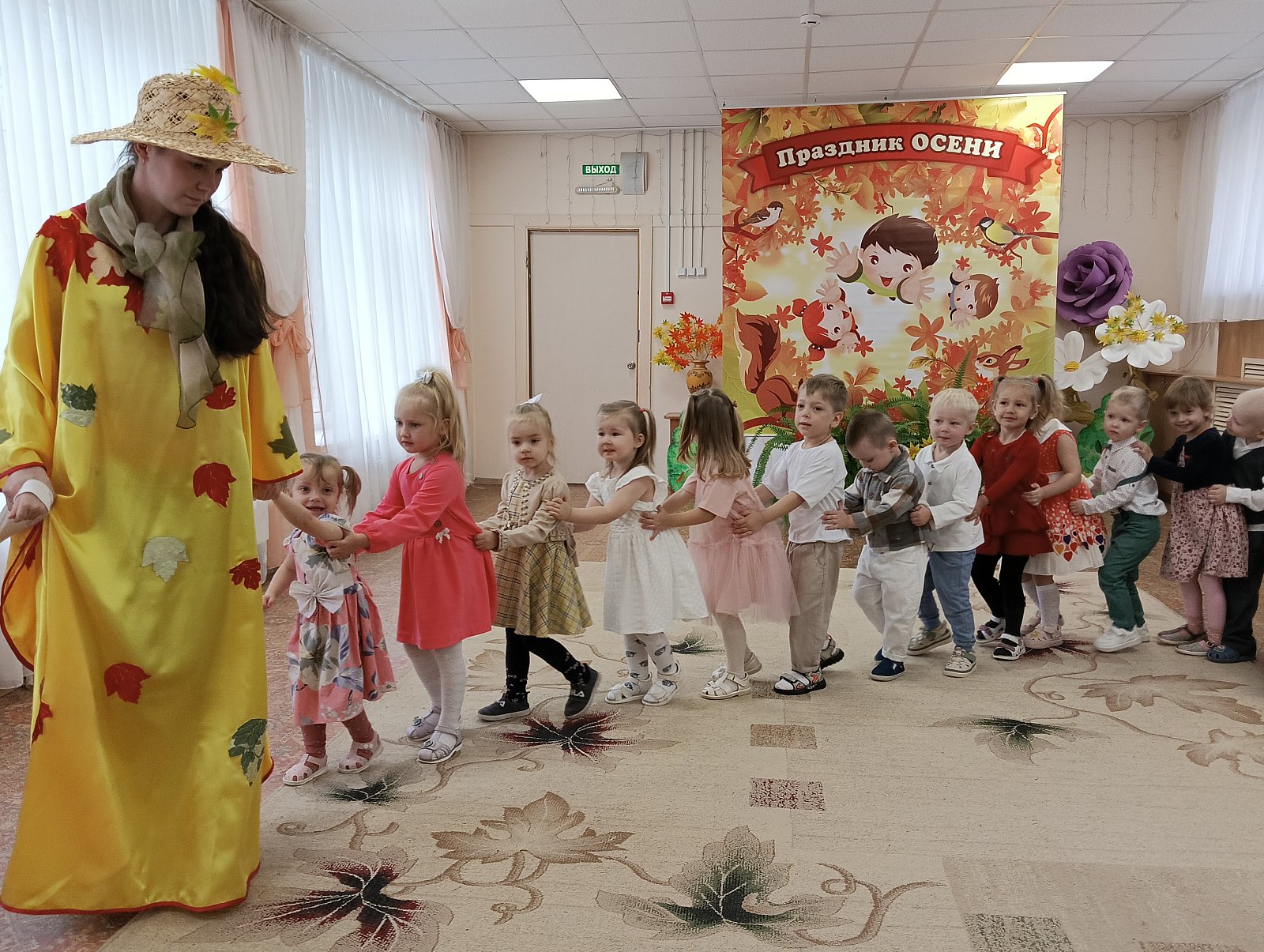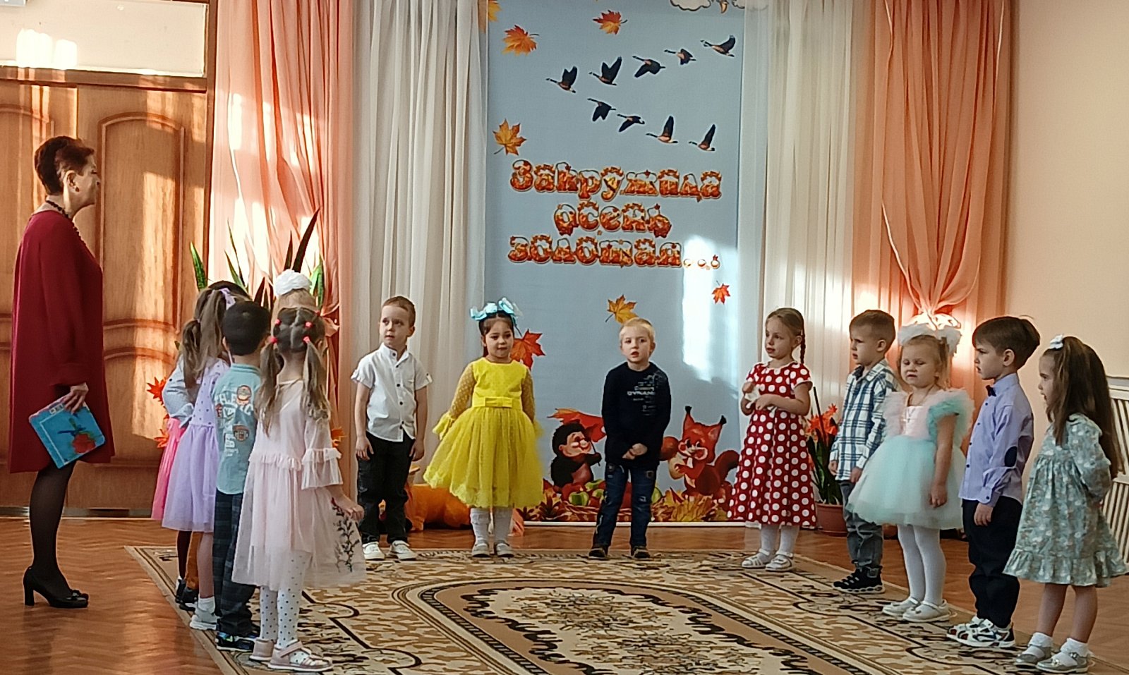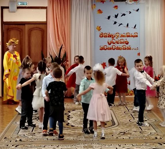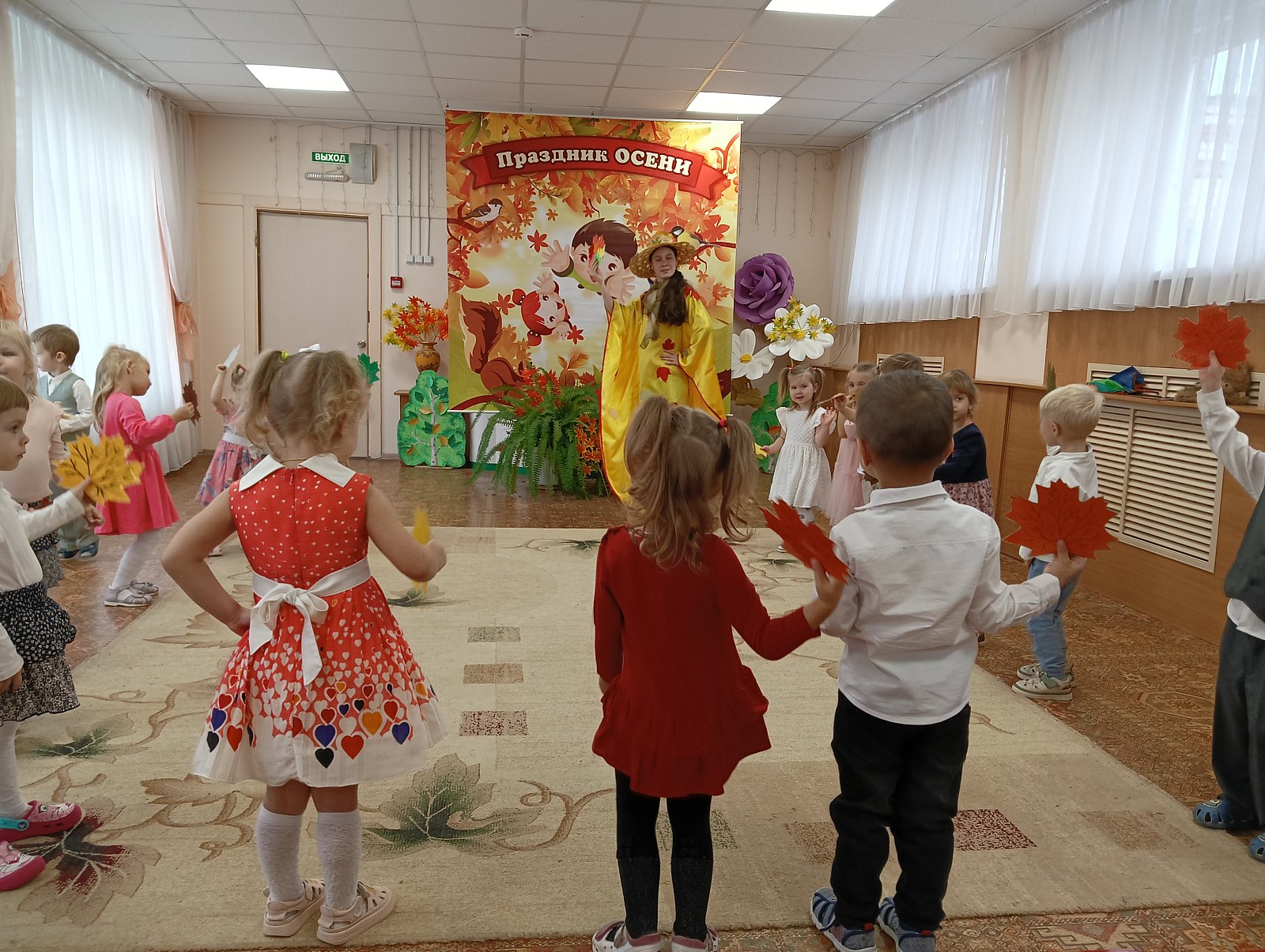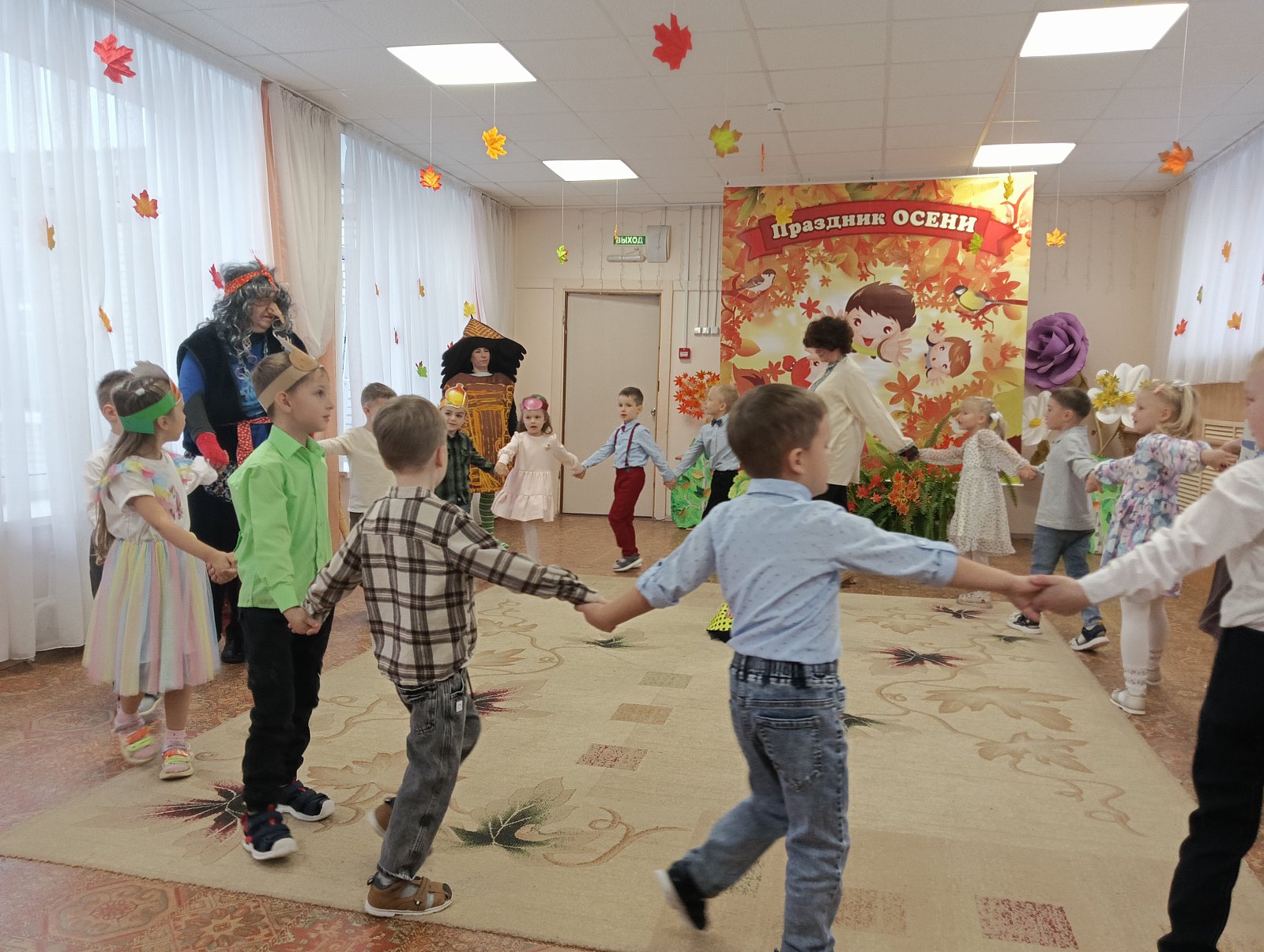 В детском саду во всех дошкольных группах прошли осенние праздники. Дети восхваляли осень за её красоту и благодарили за урожай. Пели, танцевали, соревновались,читали стихи. К ним на праздник заглянули Баба-Яга со своей избушкой, домовёнок Кузя, Простуда. Всем героям дети помогли стать лучше и добрее.