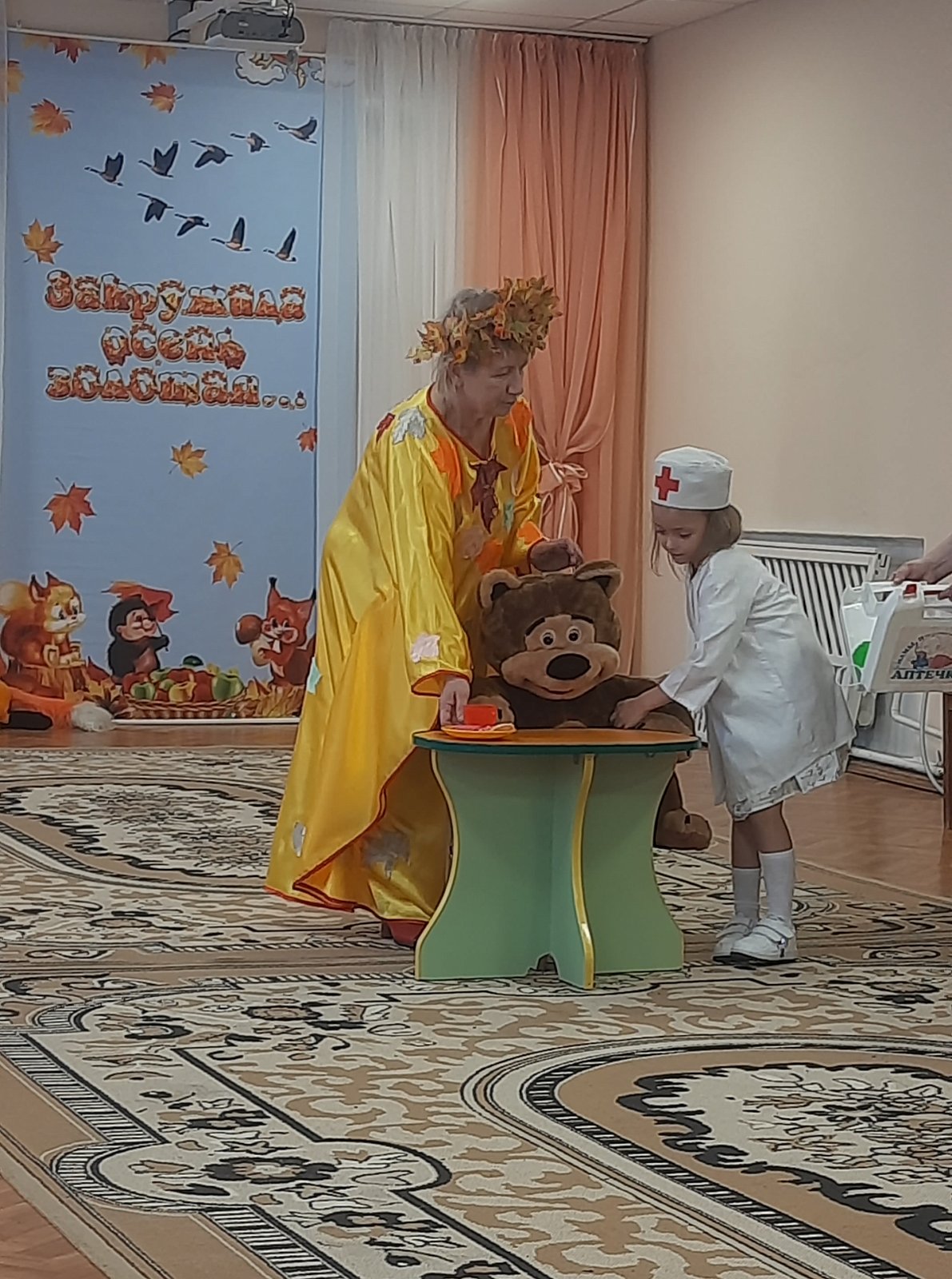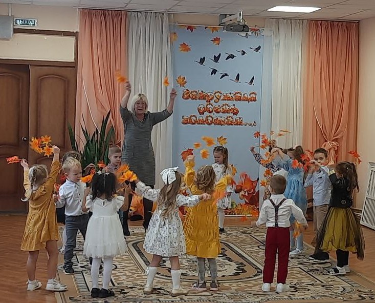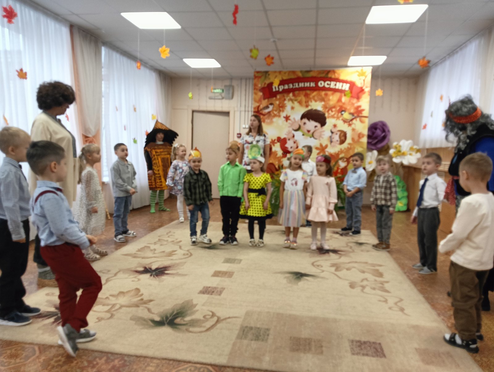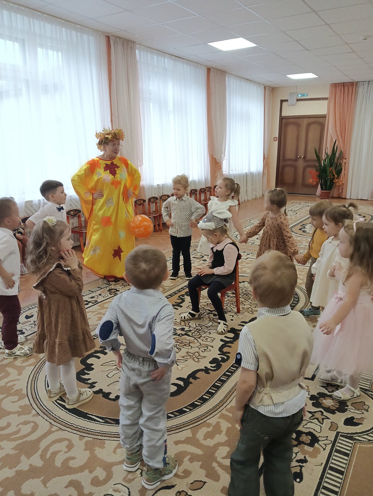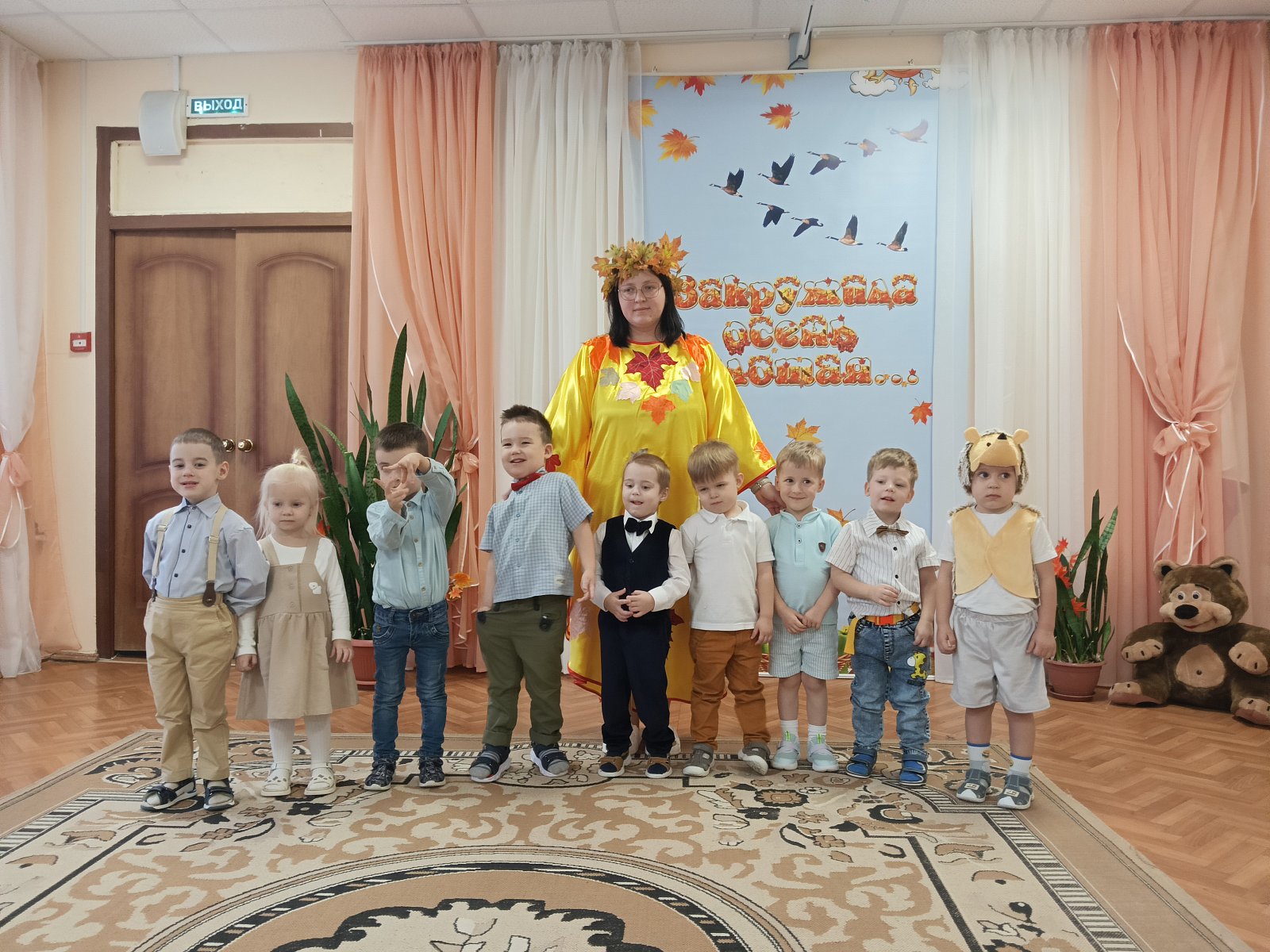 В детском саду во всех дошкольных группах прошли осенние праздники. Дети восхваляли осень за её красоту и благодарили за урожай. Пели, танцевали, соревновались,читали стихи. К ним на праздник заглянули Баба-Яга со своей избушкой, домовёнок Кузя, Простуда. Всем героям дети помогли стать лучше и добрее.