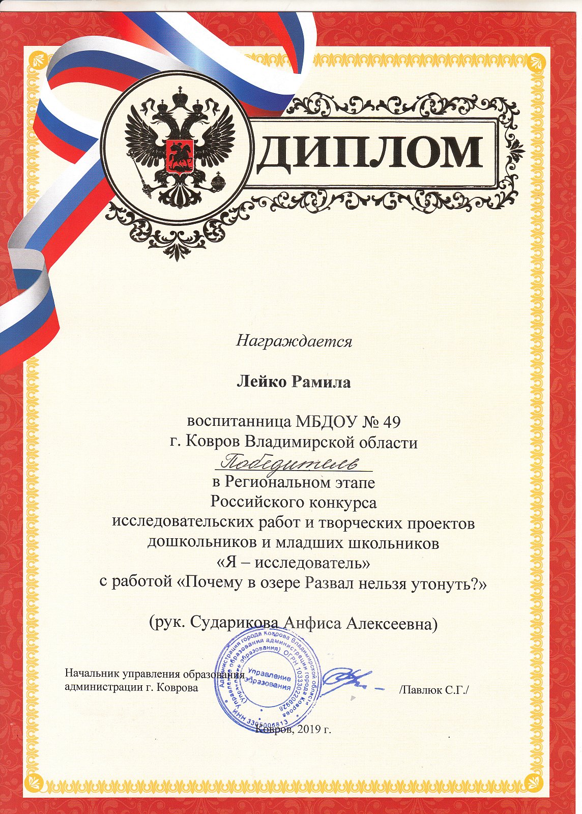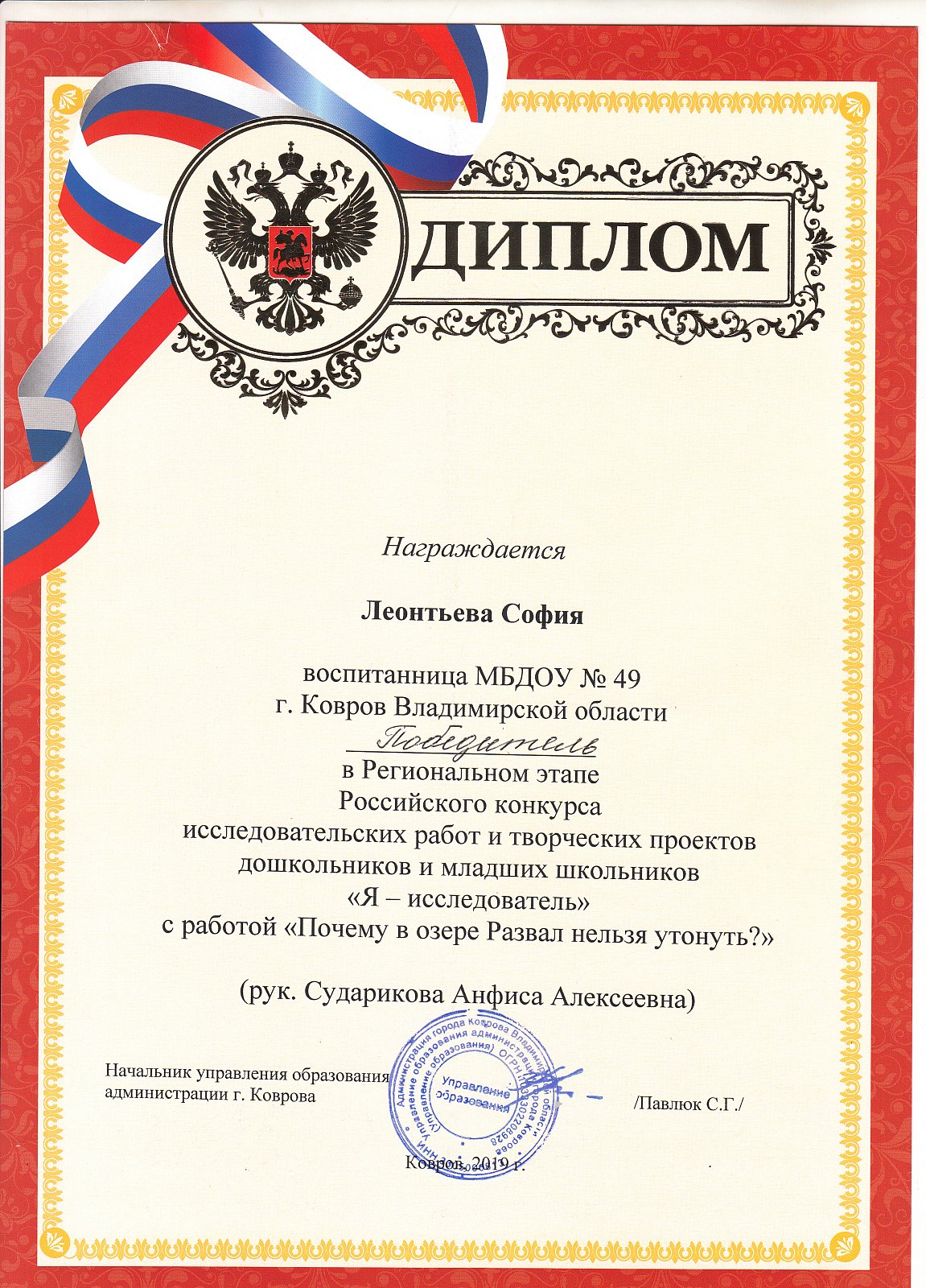 27 марта 2019 года в МБОУ СОШ № 21 состоялся XII региональный тур Всероссийского конкурса исследовательских работ и творческих проектов дошкольников и младших школьников «Я - исследователь». Воспитанники подготовительной к школе группы № 6 «Золотой ключик» Леонтьева София, Лейко Рамила и Прохорова Ульяна представили свою исследовательскую работу «Почему в озере Развал нельзя утонуть?» Работа получилась очень интересной: девочки не только рассказали об уникальных свойствах озера Развал Оренбургской области, но и продемонстрировали эксперименты с солёной и пресной водой и прорастанием семян гороха в воде с различным содержанием соли.