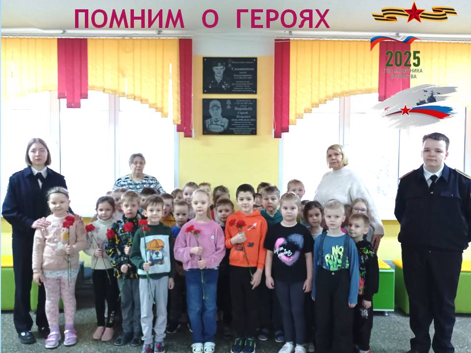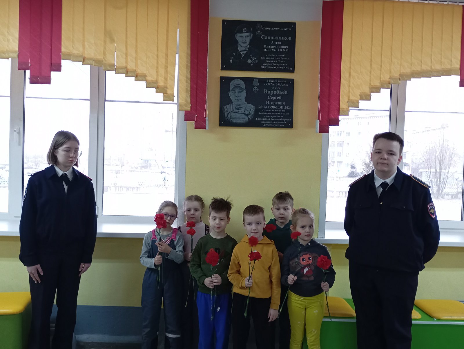 Дети почтили память героев минутой молчания и возложили цветы к мемориальным доскам героев.