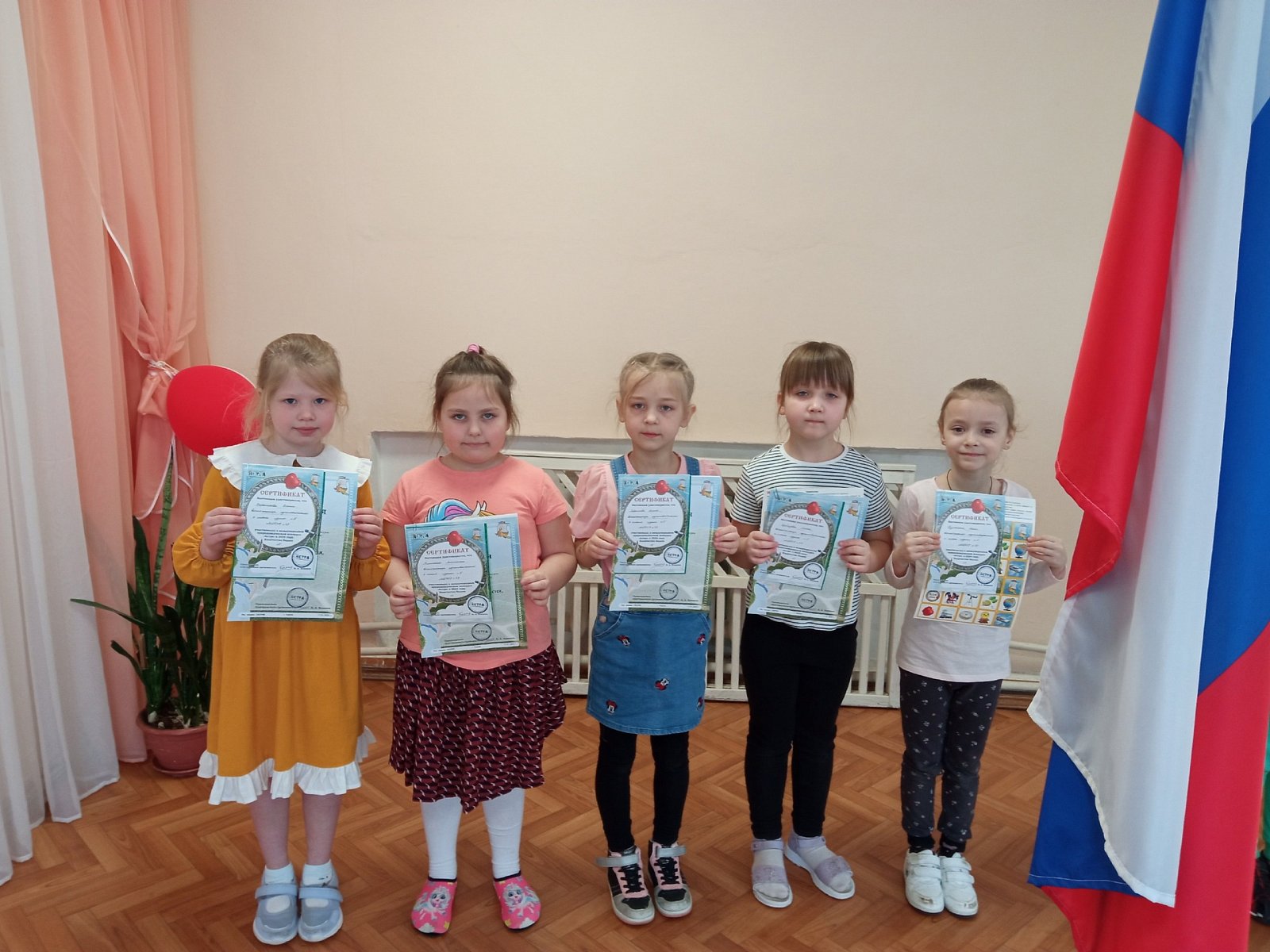 Сегодня на торжественном построении воспитанников перед Государственным флагом Российской Федерации дети получили Дипломы победителей, призёров и сертификаты участников конкурса.