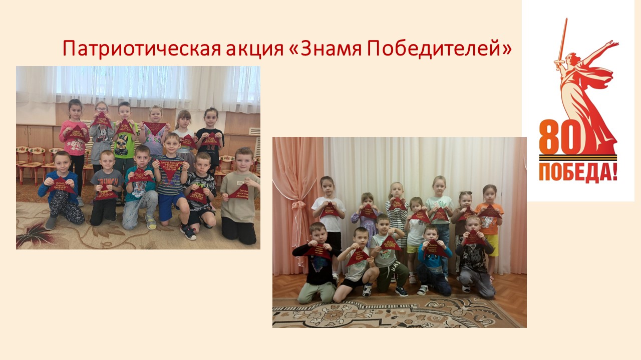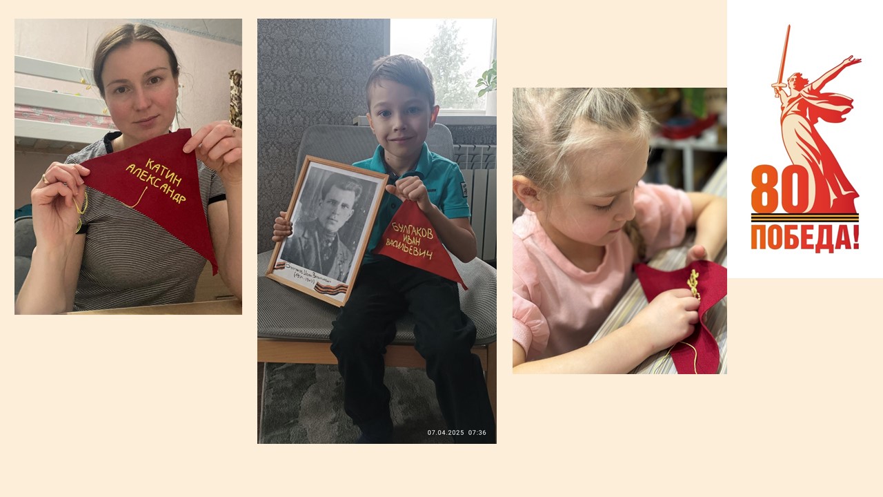 Приближается 9 мая – День 80-летия Победы в Великой Отечественной войне.30 семей наших воспитанников приняли участие в городской патриотической акции «Знамя Победителей».