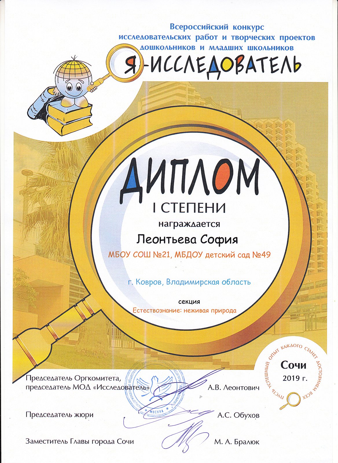 Конкурс "Я - исследователь" в Сочи