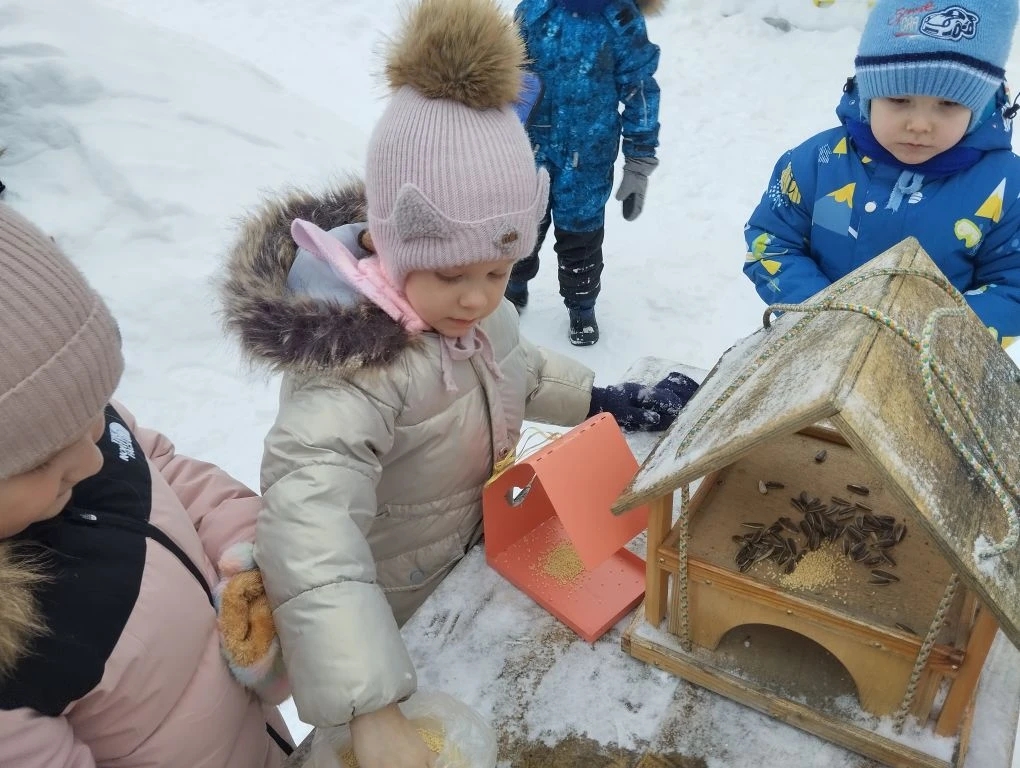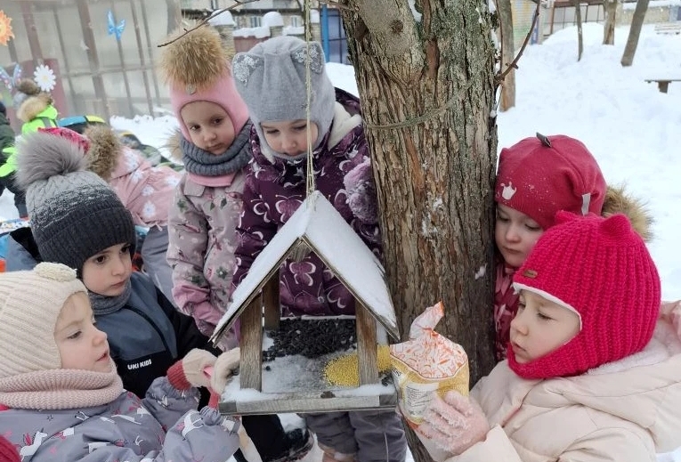 Наши воспитанники решили помочь птицам пережить эту зиму. Вместе с родителями и педагогами они сделали кормушки для наших меньших братьев, принесли корм и развесили кормушки по территории детского сада.