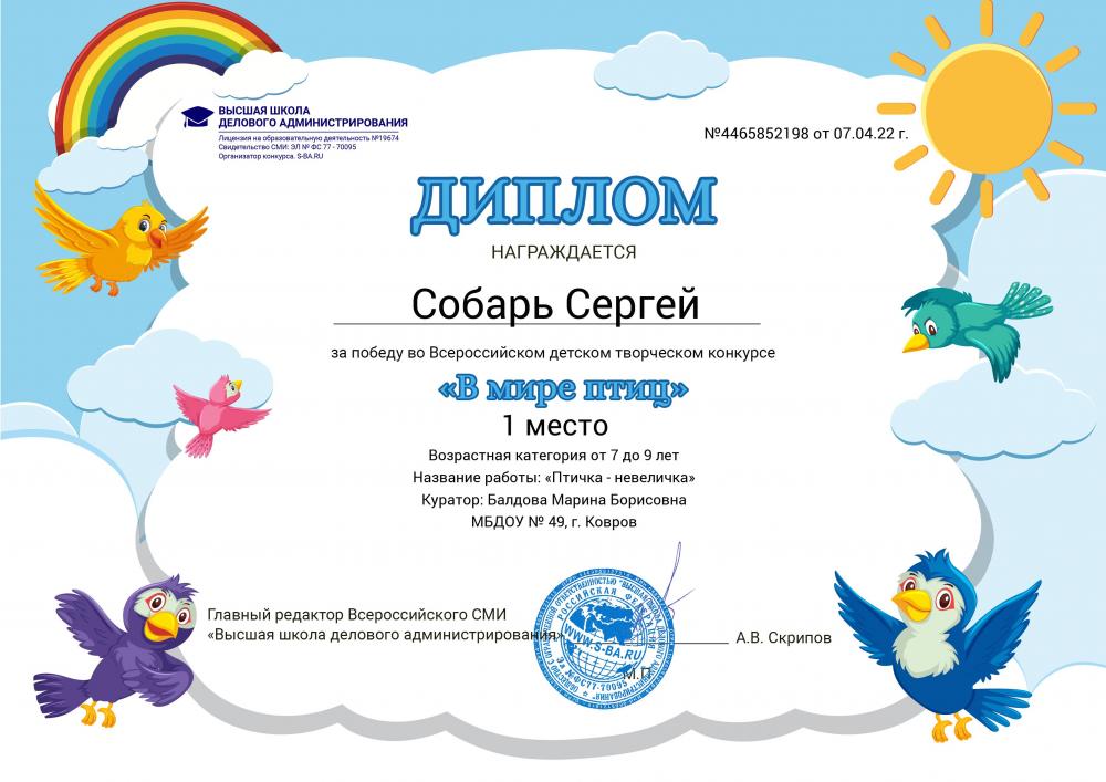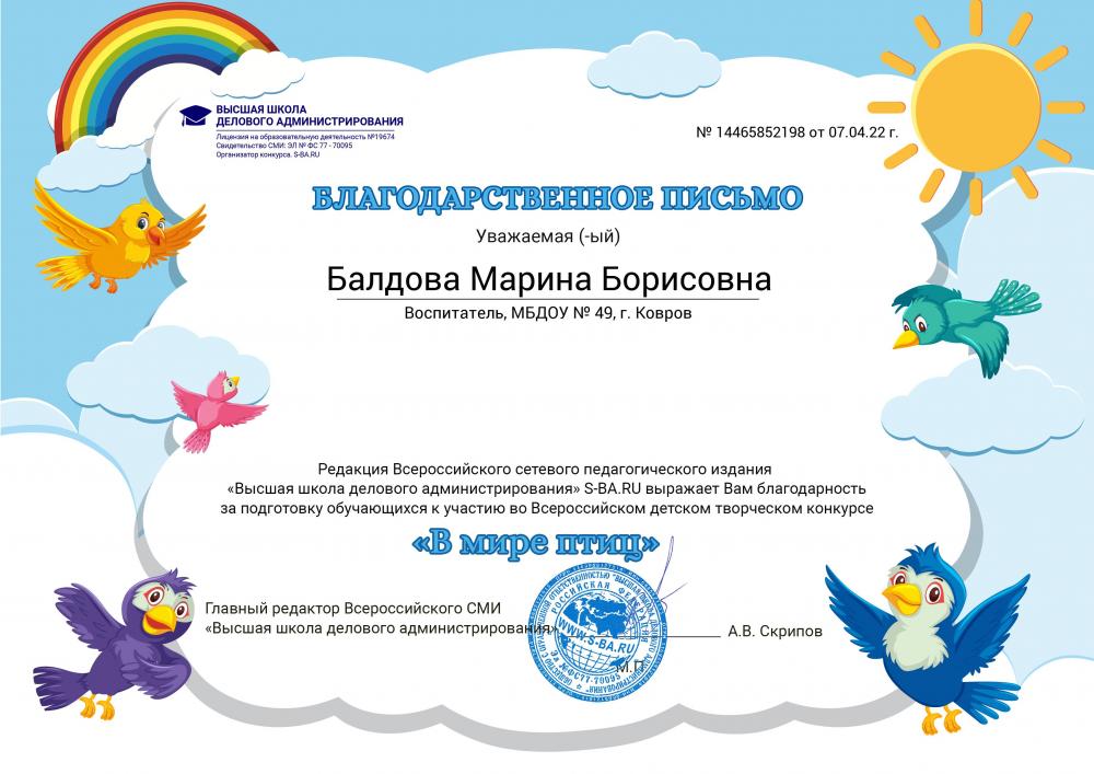 Всероссийский детский творческий конкурс "В мире птиц"